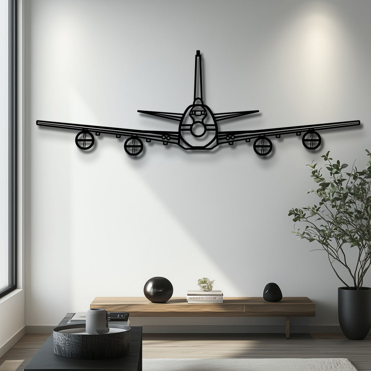 Whether you are styling a pilot's lounge, a military-themed office, or a modern workspace, this E-4B Nightwatch silhouette is a bold statement piece. It is the perfect gift for Air Force personnel, aerospace engineers, veterans, or anyone who appreciates the "National Airborne Operations Center" legacy of strategic aviation.