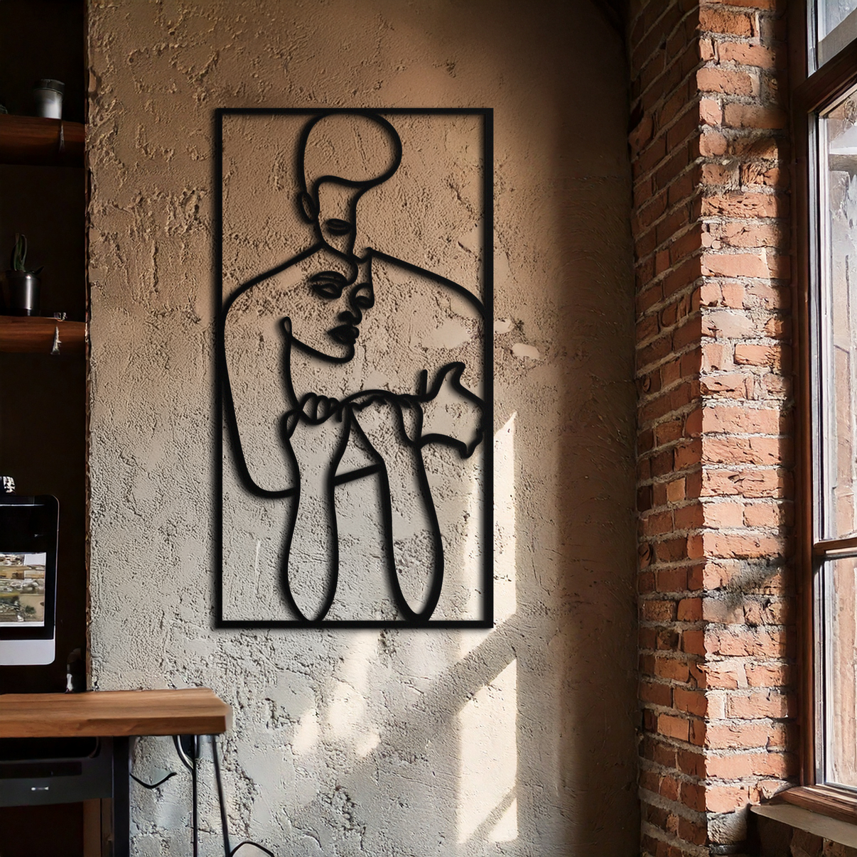 Celebrate emotional intimacy with this Abstract Couple Line Art Metal Wall Decor. Featuring a single-line sketch of a couple embracing tenderly, this artwork adds an elegant, modern vibe to any room. Precision-cut from 1.5 mm thick premium metal and finished in matte black electrostatic paint, it's a sophisticated addition to bedrooms, living rooms, or art studios.