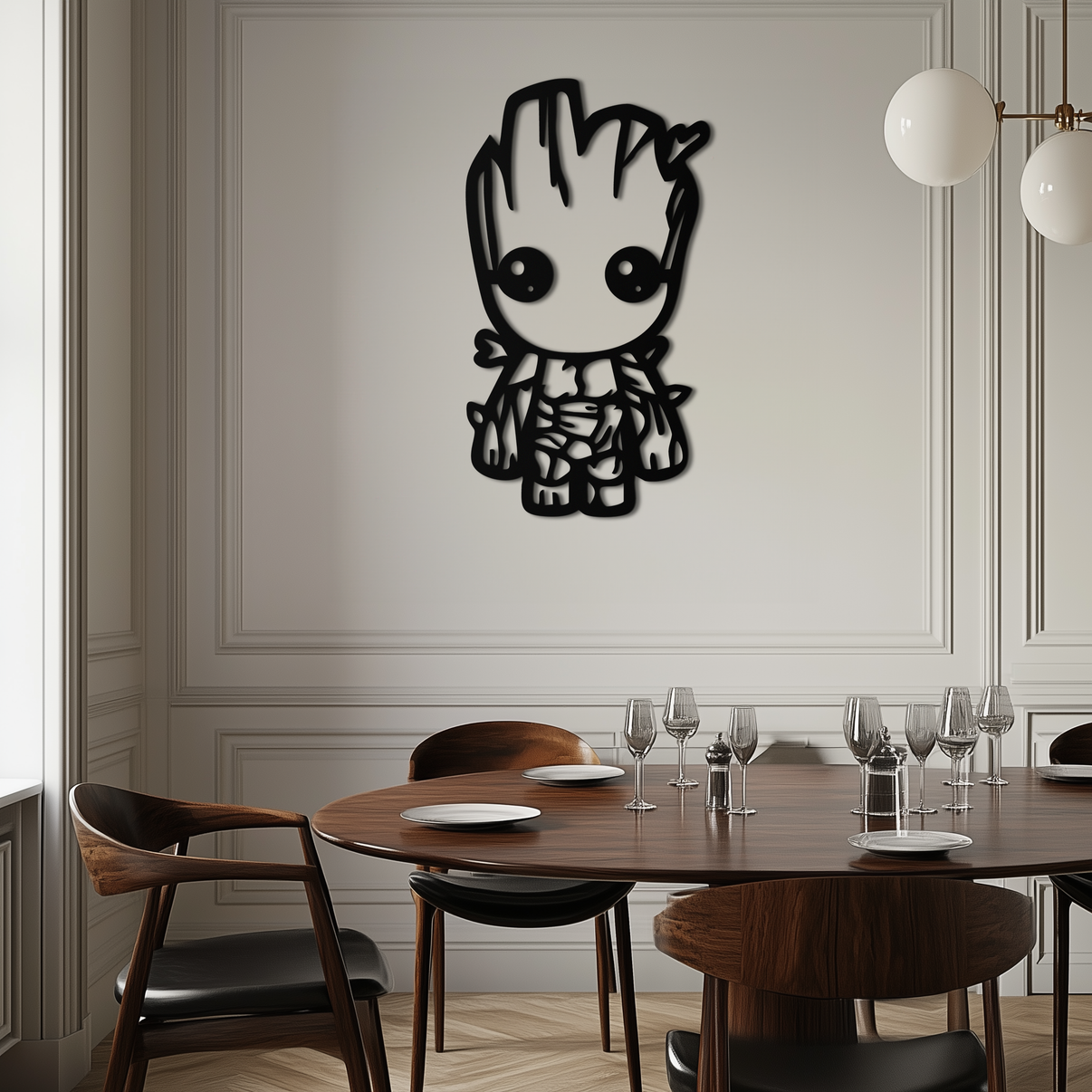 Bring charm and fun to your walls with this Baby Groot Silhouette Metal Wall Art. Inspired by the beloved comic character, this playful design adds a lighthearted and whimsical touch to any child’s room, nursery, or entertainment space. Made from high-quality metal, it’s perfect for fans of quirky and lovable characters.