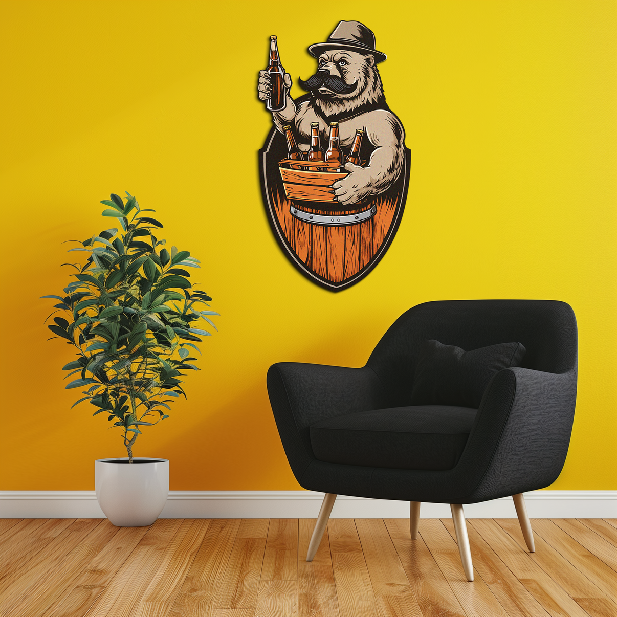 Our Bearded Beer Bear Metal Wall Art is the ultimate tribute to laid-back vibes, good times, and cold bottles. With his classic hat, glorious mustache, and a barrel full of brews, this bear is the party.