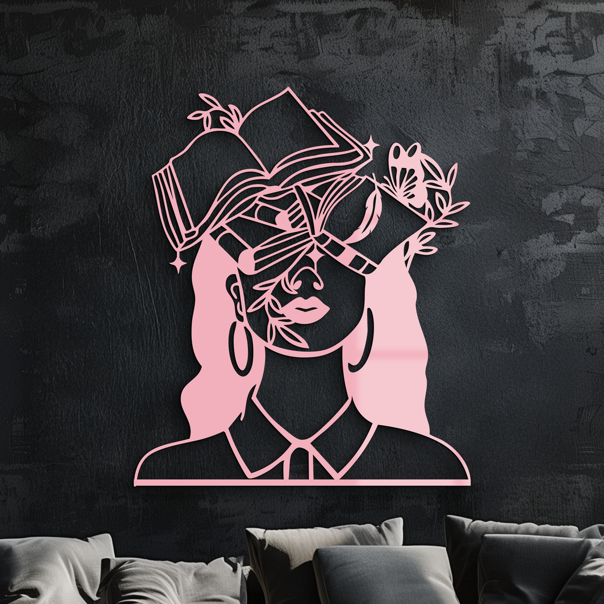 Celebrate the beauty of knowledge and creativity with this Book Lover Woman Silhouette Metal Wall Art. Featuring a stunning female figure with flowing hair, books, and floral elements, this piece symbolizes wisdom, imagination, and the love of reading. Crafted from premium quality metal and finished with durable powder coating, it is perfect for adding a modern and intellectual charm to your home, library, or study.