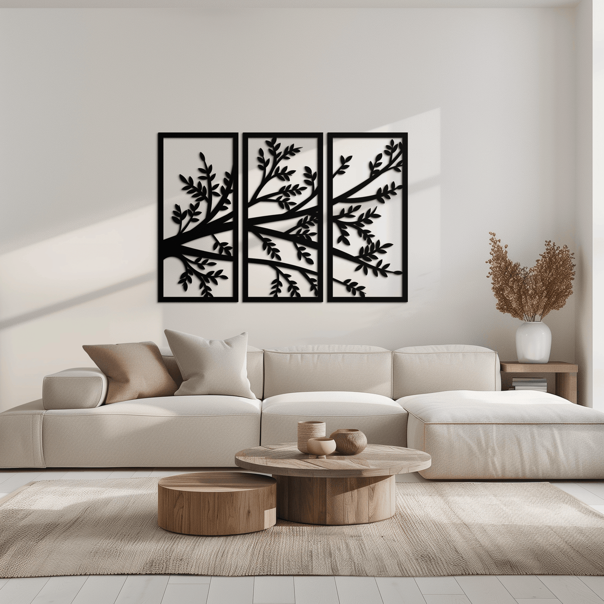 Bring the elegance of nature into your home with this Branch Metal Wall Art, crafted from 1.5 millimeter premium steel and electrostatically painted for a durable, rust-resistant finish. This three-panel steel artwork features a beautifully detailed branch with leaves, adding a modern yet organic touch to any space.