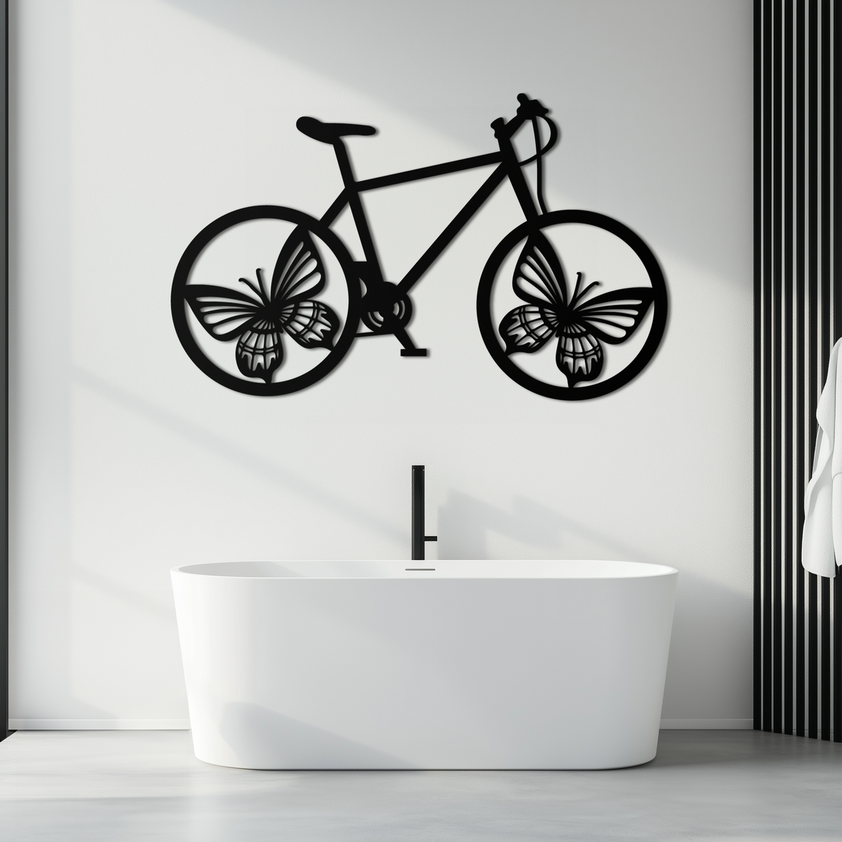Add a whimsical and modern flair to your wall with this Butterfly Wheel Bicycle Metal Wall Art. This imaginative design merges the form of a bicycle with elegant butterfly-shaped wheels, making it a statement piece for art and cycling lovers alike. Perfect for living rooms, bedrooms, offices, or any creative space.