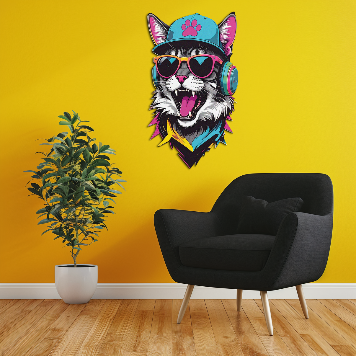 UV printed on sturdy ST-37 steel, it’s built to blast color and personality for years. Perfect for music rooms, teen bedrooms, studios, or any space lacking in feline funk.