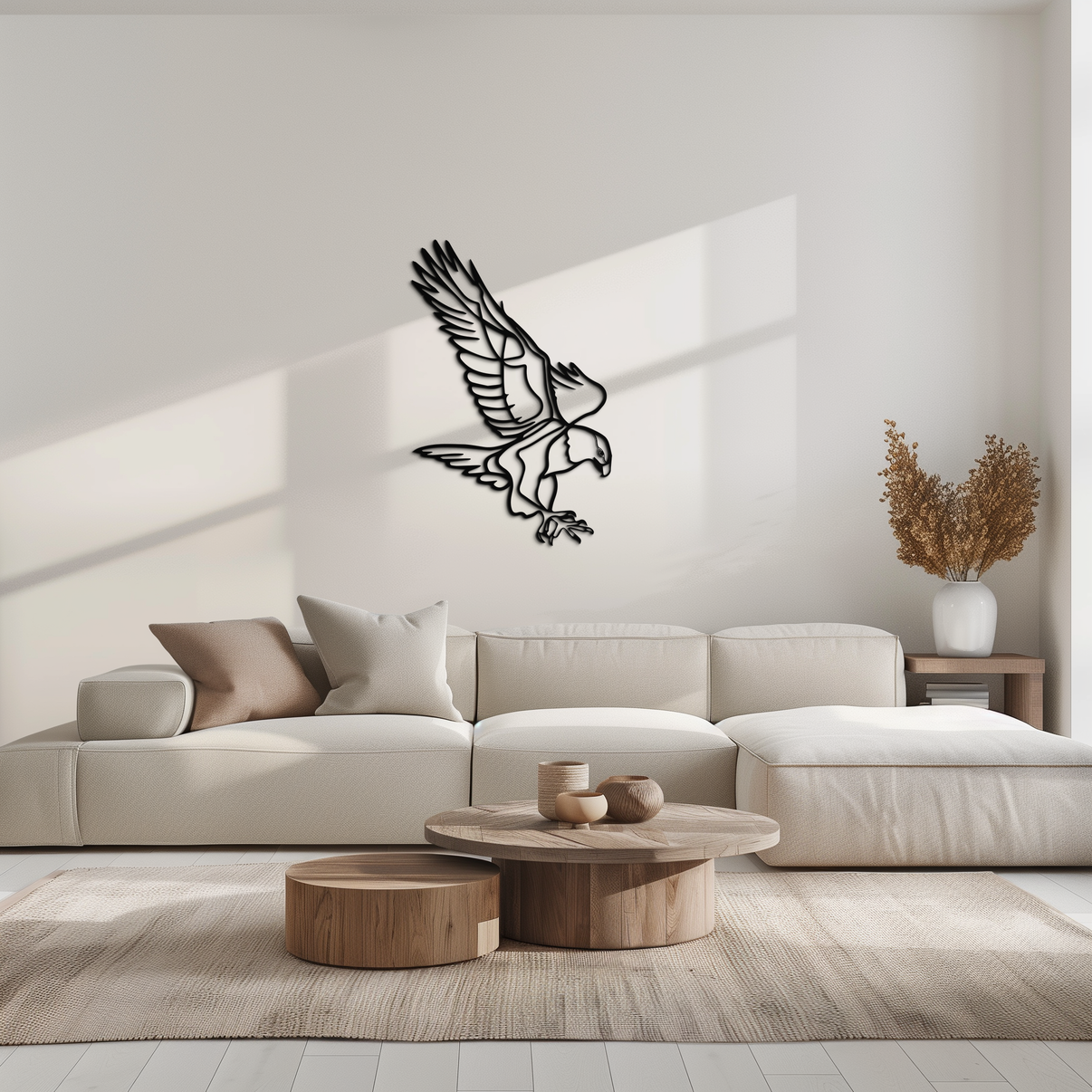 Showcase strength, freedom, and power with this striking Eagle Metal Wall Art. Featuring a majestic eagle swooping down with its wings spread wide, this design is perfect for wildlife lovers, patriotic decor, and modern interiors.