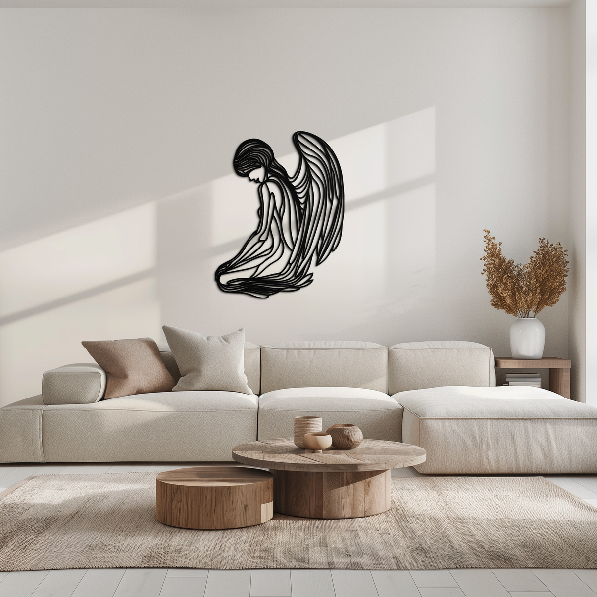 Add a touch of celestial beauty to your home with this Ethereal Angel Metal Wall Art. Featuring a gracefully kneeling angel with intricately detailed wings, this metal artwork embodies serenity, elegance, and peace. Perfect for living rooms, bedrooms, or meditation spaces, this divine decor will enhance any wall with its artistic silhouette.