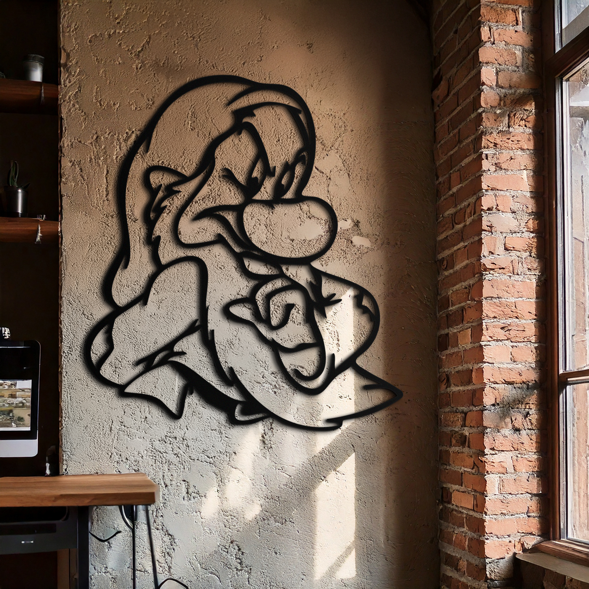 Bring some animated charm and humor to your space with our Grumpy Dwarf Metal Wall Art. Inspired by classic cartoon characters, this piece features a detailed and expressive dwarf silhouette deep in thought. Whether you're decorating a kid’s room, game room, or just want to add a bit of fun to your home, this piece delivers with personality and style.