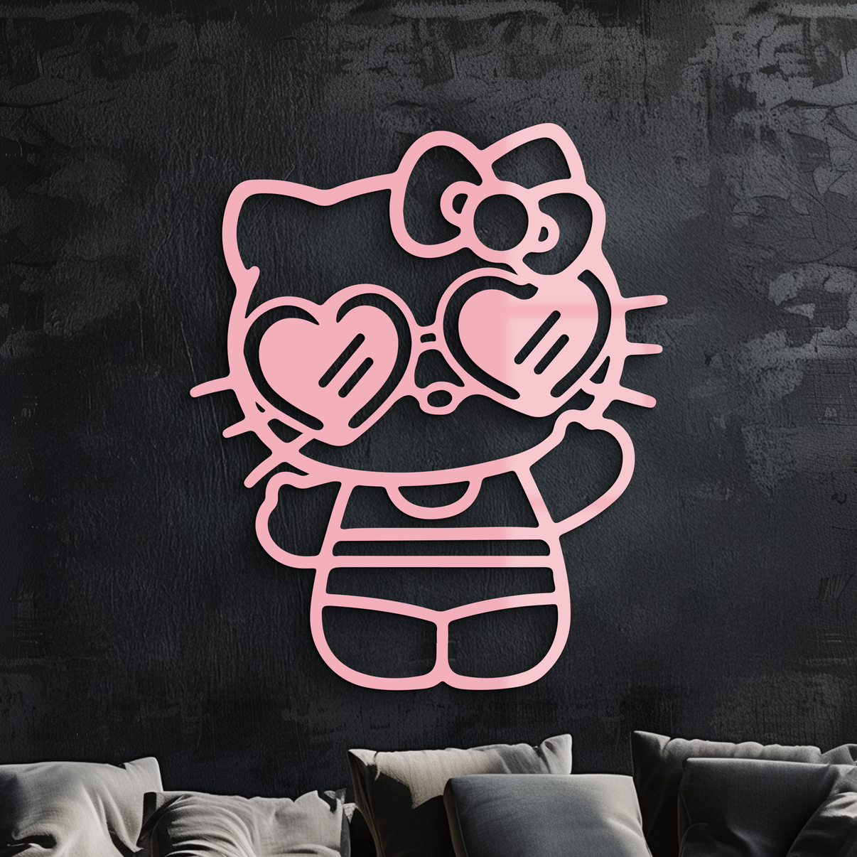 Hello Kitty Silhouette Metal Wall Art – Heart Glasses Cute Design - KAFGP036