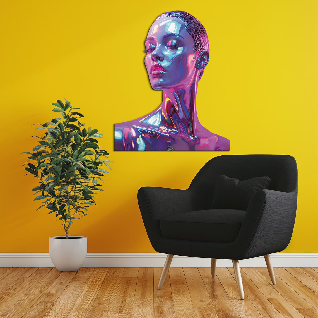 Holographic Woman Portrait Metal Wall Art – Futuristic UV Decor-KAFUVM009