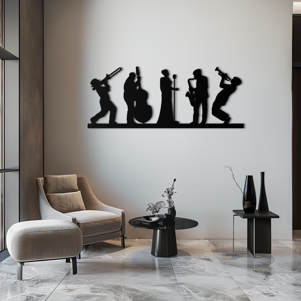 Bring the rhythm of jazz into your home with this Jazz Band Metal Wall Art. Featuring a stunning silhouette of musicians playing instruments like the saxophone, trumpet, and double bass, this unique metal artwork captures the energy and passion of live jazz performances. Perfect for music lovers, this piece adds an artistic and modern vibe to any space, from living rooms and music studios to cafés and bars.