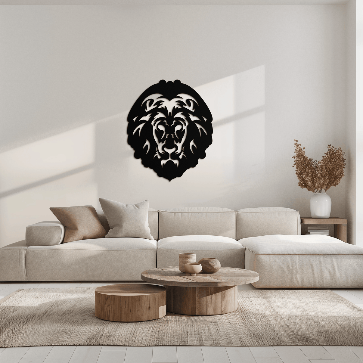 Add a bold and elegant touch to your space with this Lion Head Metal Wall Art, crafted from 1.5 millimeter premium steel and electrostatically painted for a durable, rust-resistant finish. This intricate lion head design is perfect for those who appreciate modern metal wall decor, geometric animal artwork, or a large steel wall sculpture.