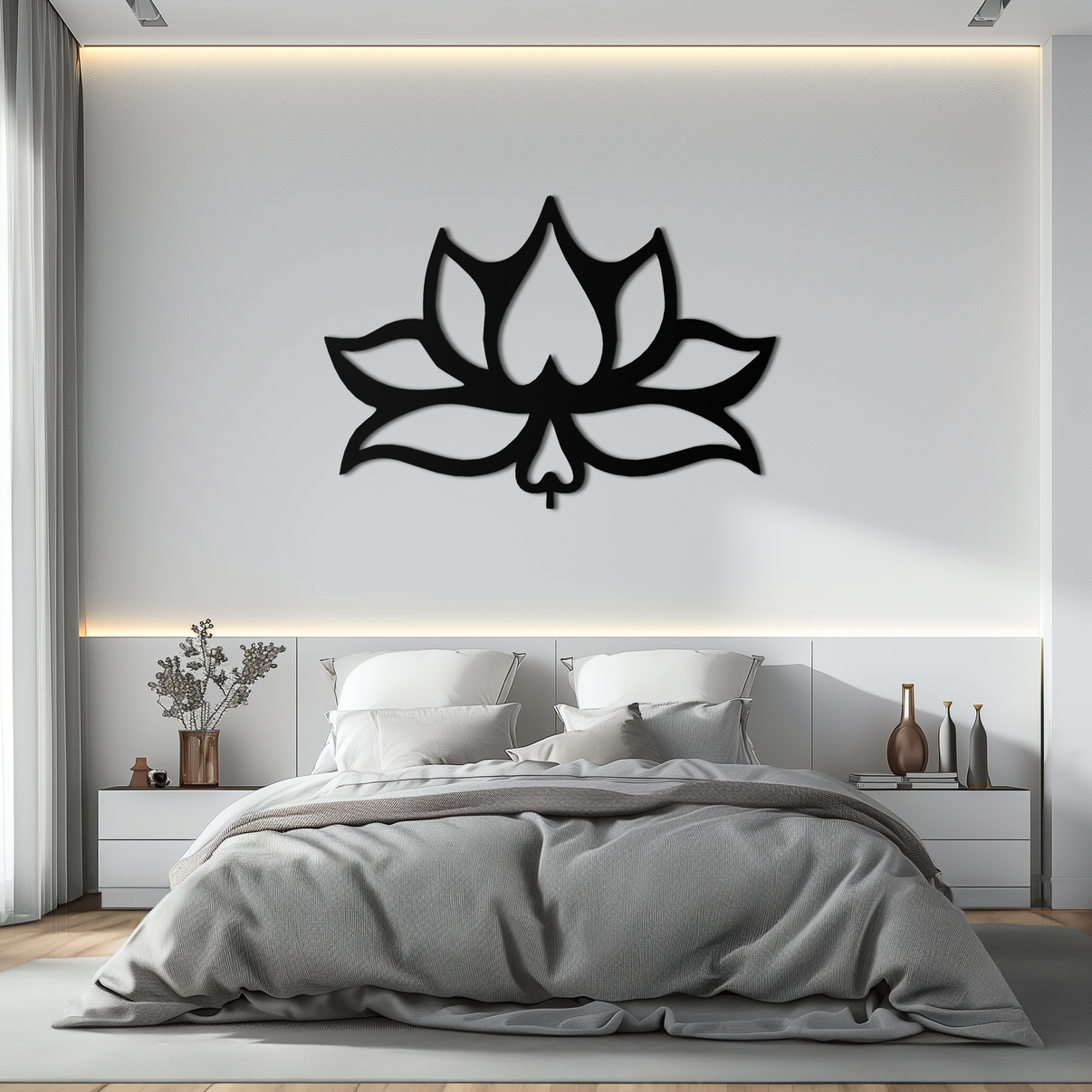 Infuse your space with the serene beauty of our Lotus Flower Metal Wall Art. Designed with graceful curves and balanced symmetry, this elegant wall piece is crafted from 1.5mm premium steel and finished with a smooth matte black electrostatic powder coating. Perfect for creating a calming, artistic atmosphere in your home, office, or meditation space.