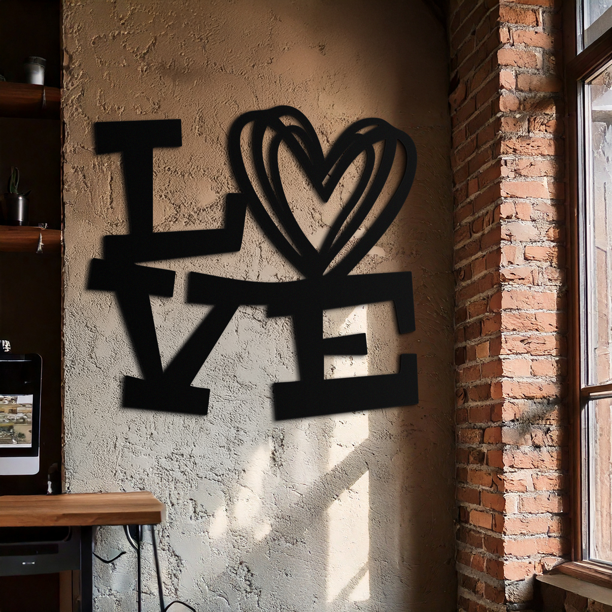 Express your love with our LOVE Heart Modern Metal Wall Art. This charming design features the word "LOVE" with a heart-shaped "O," crafted from premium 1.5mm steel and finished with a durable matte black electrostatic powder coating. Perfect for living rooms, bedrooms, or as a heartfelt gift for someone special.