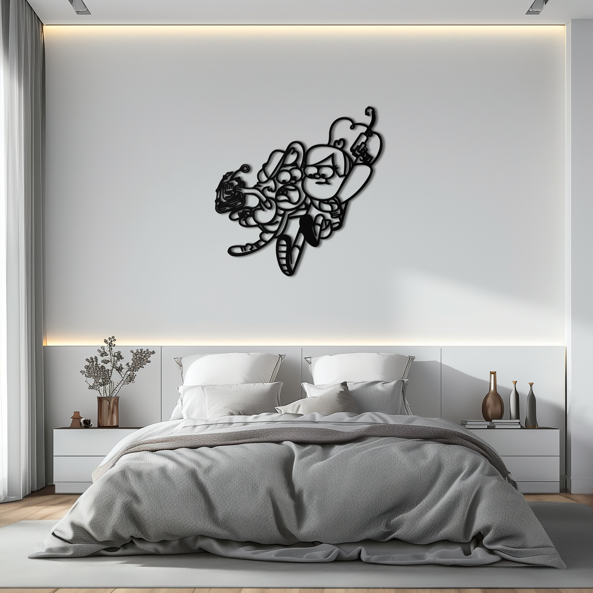 Bring the mystery and adventure of Gravity Falls to your home with this Mabel and Dipper Pines metal wall art. This design features both siblings in a dynamic and playful silhouette, capturing their iconic personalities and adventurous spirit. Perfect for Gravity Falls fans, this piece adds a unique, nostalgic touch to any space.