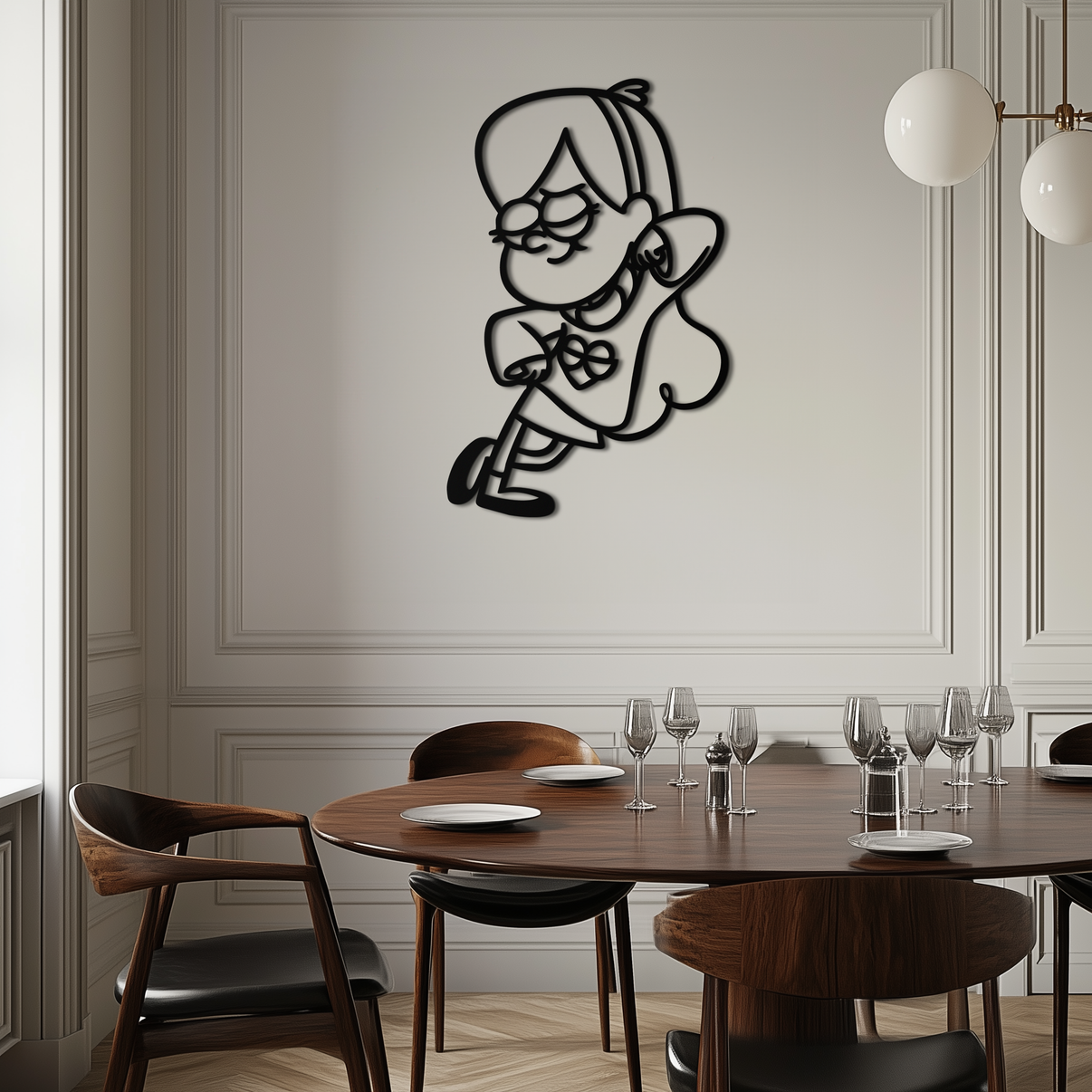 Add a burst of fun and color to your space (even in black metal!) with this Mabel Pines metal wall art, inspired by the beloved Gravity Falls character. With her iconic sweater and quirky charm, Mabel’s silhouette brings joy, imagination, and bold personality to any wall. Perfect for fan rooms, kids’ spaces, or collector displays.