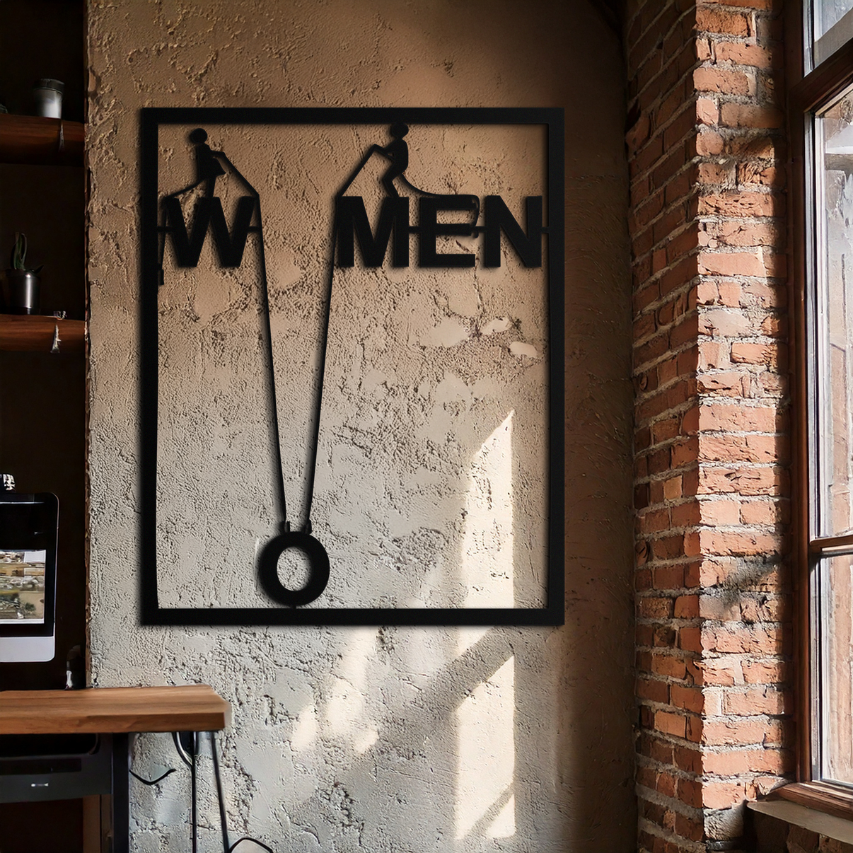 Make a bold statement with our Minimalist "Women" Typography Metal Wall Art. Featuring an artistic depiction of the word "Women" with a unique rope swing design, this modern piece is crafted from 1.5mm premium steel and finished with a sleek matte black electrostatic powder coating. A powerful and elegant addition to any home or office space.