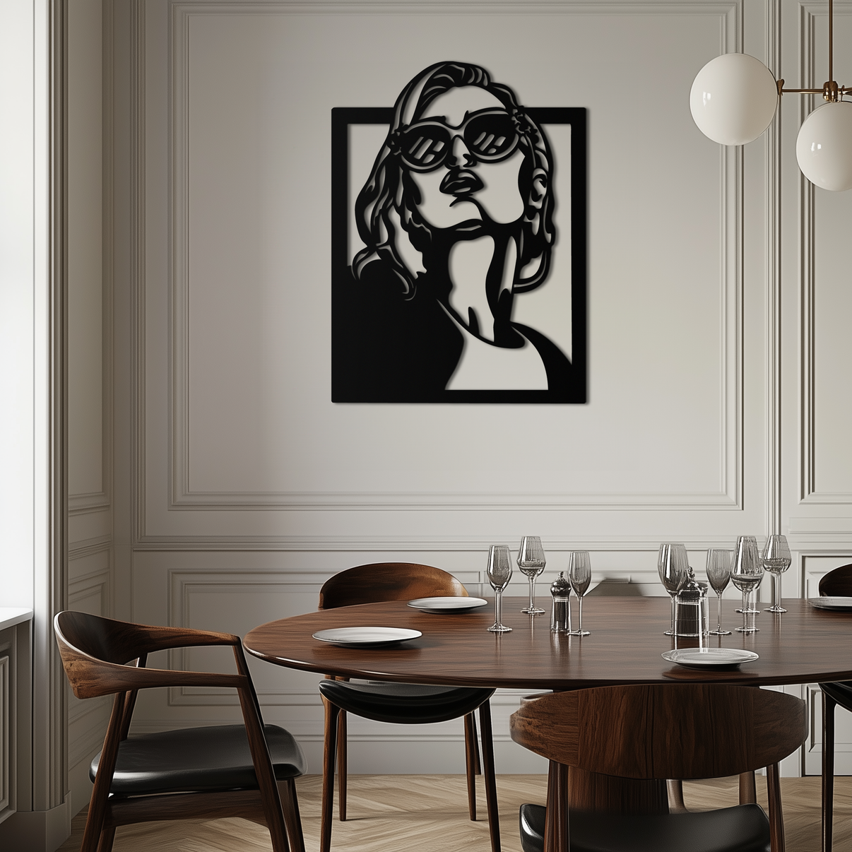 Add a touch of modern confidence to your space with this “Sunglasses Woman” silhouette metal wall art. Crafted from high-quality 1.5 mm metal , this bold and expressive design features a stylish woman wearing oversized sunglasses, exuding cool, fashionable energy. Ideal for beauty salons, dressing rooms, bedrooms, or fashion boutiques. Coated with electrostatic powder for long-lasting durability and elegance.