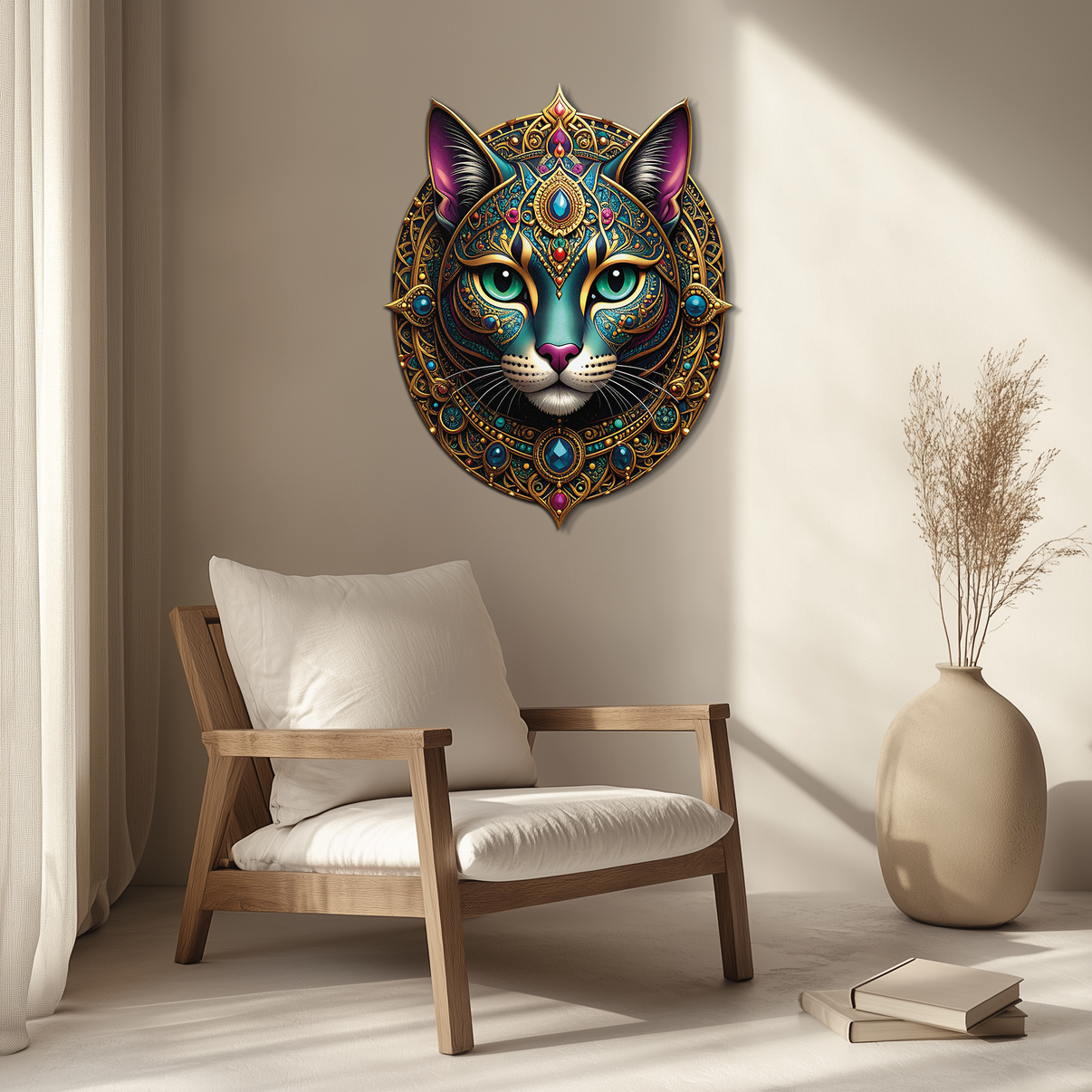 This Mystic Mandala Cat Metal Wall Art is where divine geometry meets sassy feline energy. UV-printed on high-quality ST-37 steel, it explodes with color, symmetry, and attitude. It’s the kind of wall decor that doesn’t whisper – it meows with style.