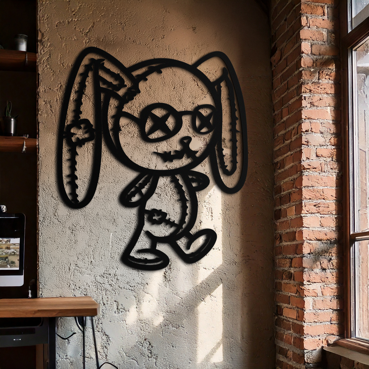 Let the Patchwork Bunny metal wall art hop into your home and add a soft, artistic touch full of heartwarming character.