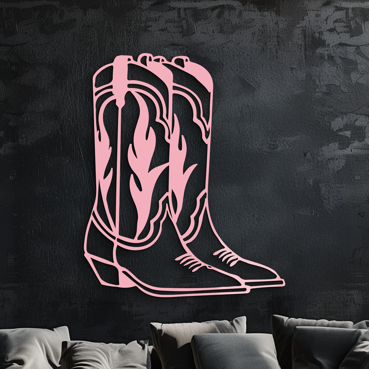 This modern Pink Cowboy Boots metal wall art is the perfect way to add a touch of sophistication and western beauty to your home. Order yours today.