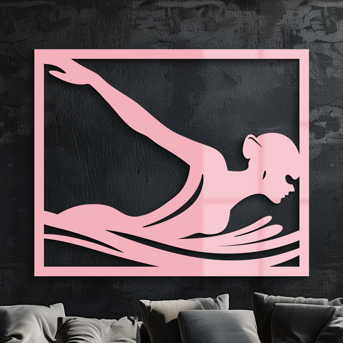 Pink Swimmer Woman Silhouette Metal Wall Art – Sporty Modern Home Decor - KAFGP187