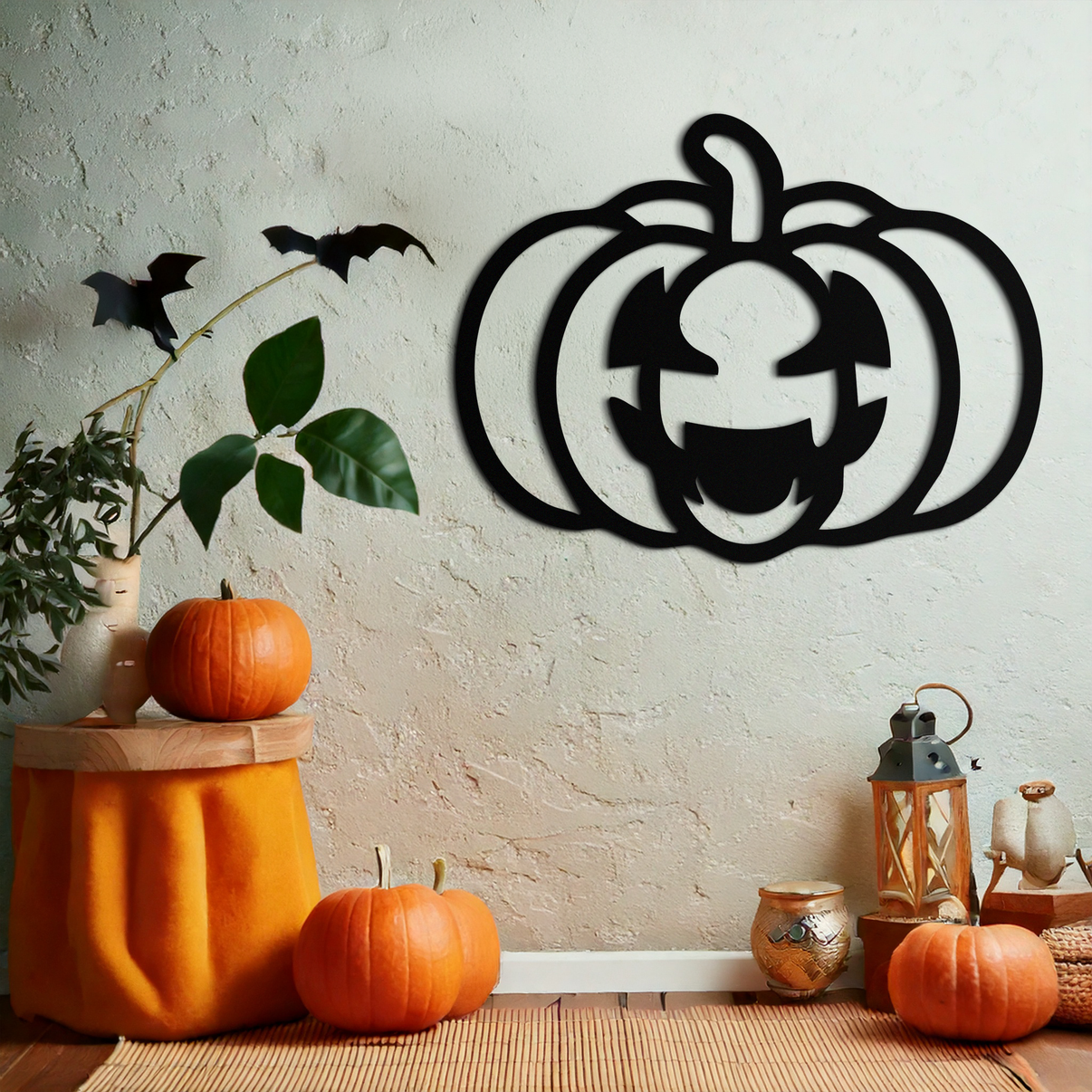 Create a spooky atmosphere for Halloween with our Pumpkin Halloween Metal Wall Art. This charming design features a jack-o'-lantern with a playful smile, perfect for adding festive spirit to your home or garden. Crafted from durable 1.5mm steel and finished with a matte black electrostatic powder coating, it’s built to last indoors and outdoors.