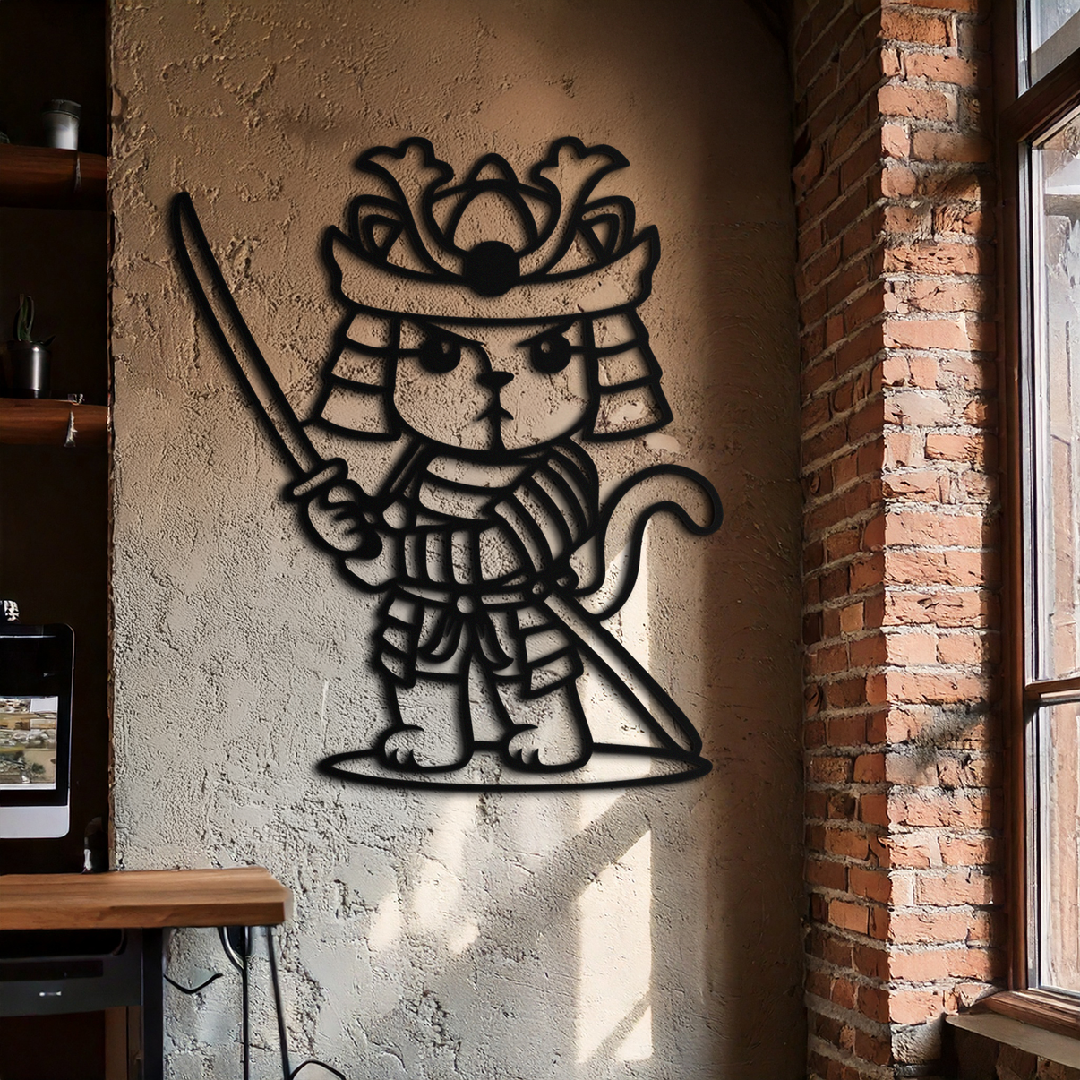 Bring a unique blend of strength and cuteness to your space with our Samurai Cat Warrior Metal Wall Art. Featuring a determined feline samurai holding a katana, this detailed design adds a playful yet powerful touch to any room. Crafted from high-quality metal, this artwork is perfect for cat lovers, anime fans, or anyone who appreciates Japanese culture. Ideal for living rooms, bedrooms, or game rooms, this piece creates an eye-catching statement.