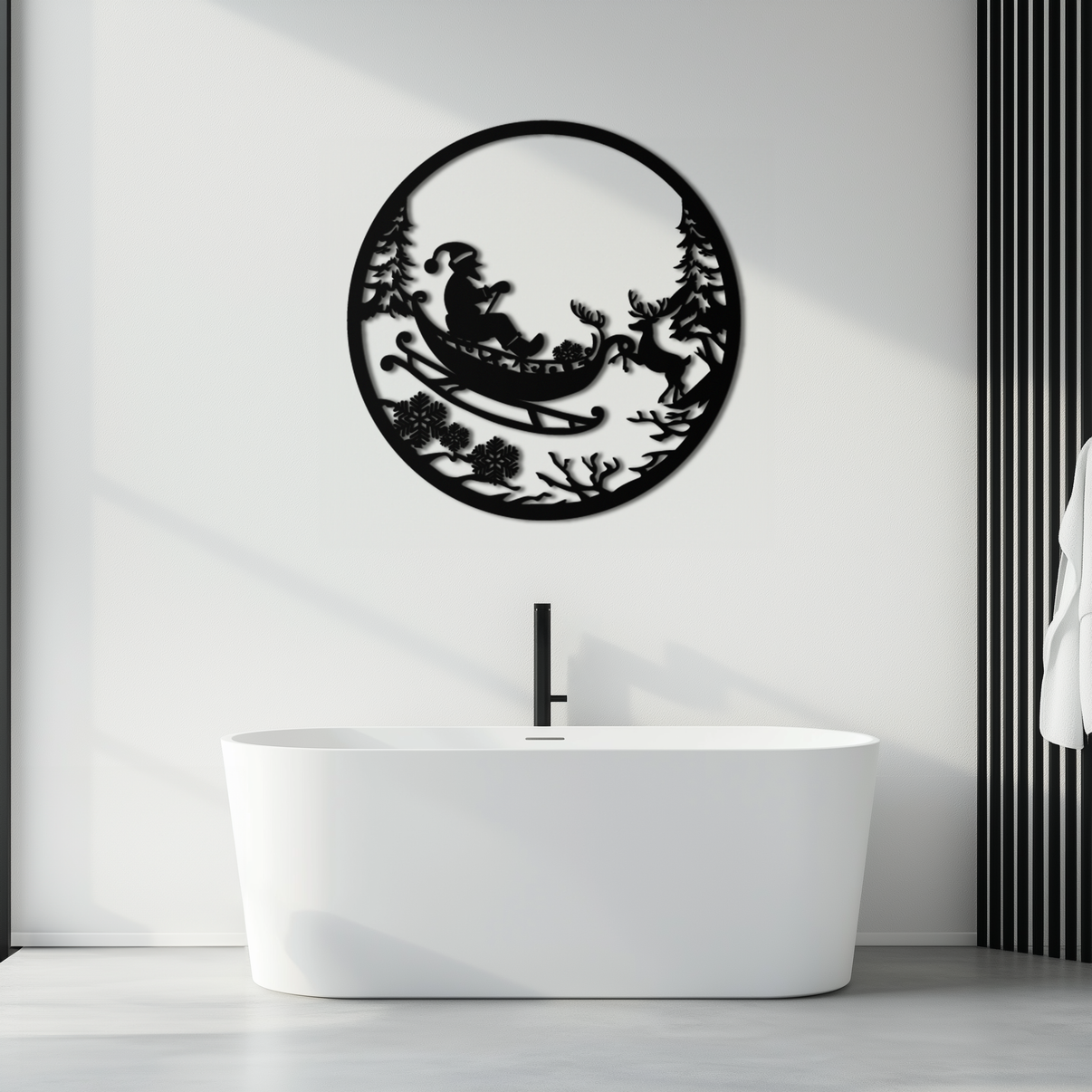 Bring the magic of Christmas into your home with this Santa Sleigh Metal Wall Art. Featuring a beautifully crafted silhouette of Santa in his sleigh, led by reindeer through a winter wonderland, this festive decoration adds warmth and holiday spirit to any space. A perfect addition for Christmas lovers, this piece brings seasonal charm to your home or office.