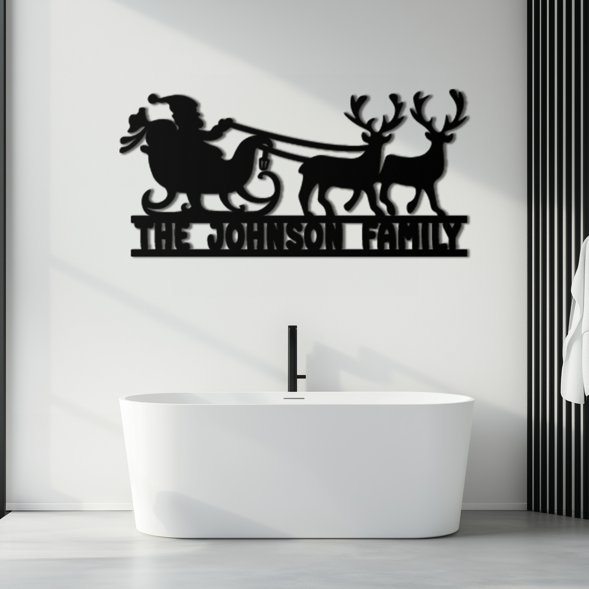 Make your holiday season extra special with this Personalized Santa Sleigh Metal Wall Art. Featuring Santa in his sleigh, led by reindeer, and customized with your family name, this piece is the perfect addition to your Christmas decorations. A heartwarming keepsake that brings joy, nostalgia, and a festive charm to your home.
