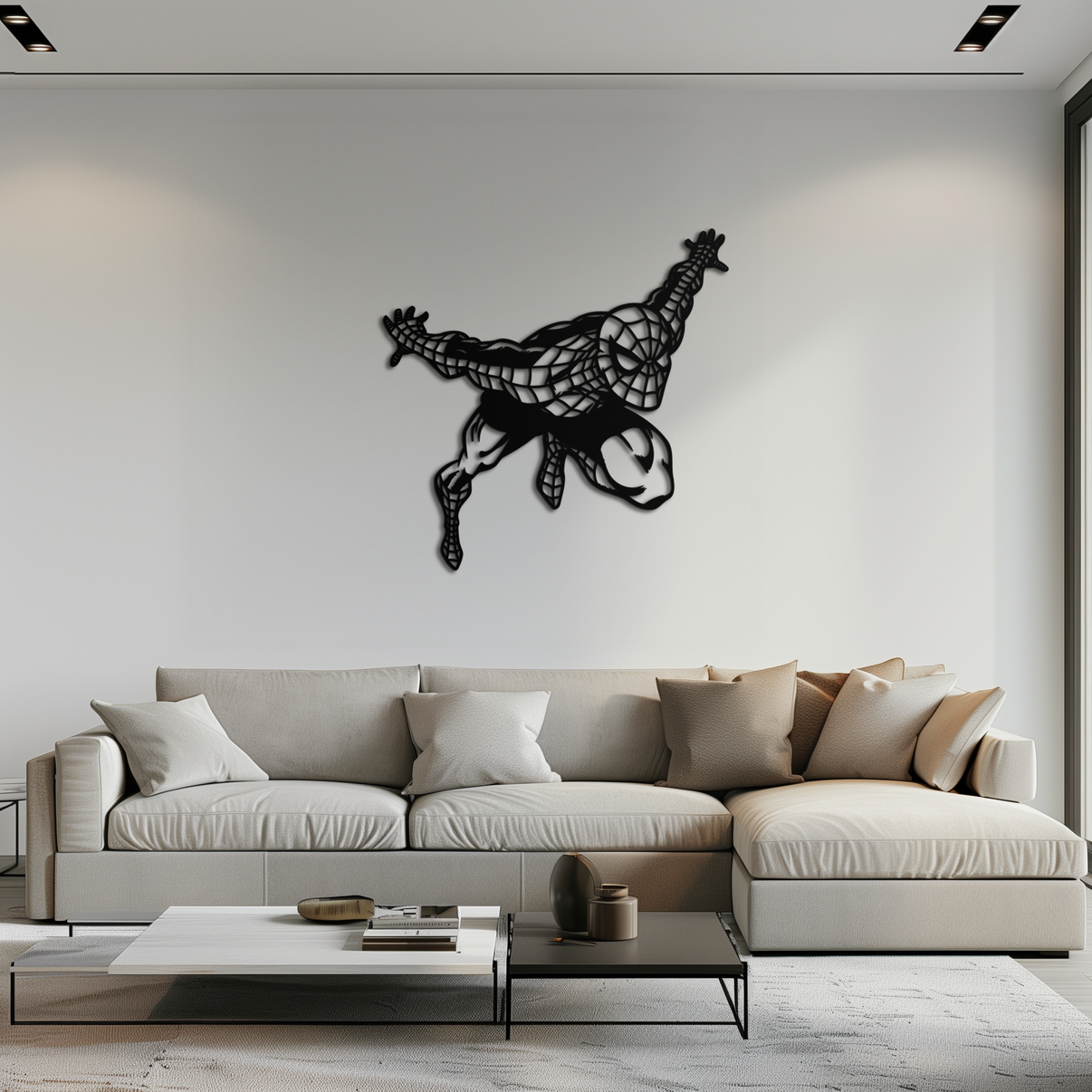 Bring action and adventure to your walls with this Spider-Man Metal Wall Art. Designed in a dynamic pose, this geometric-style cutout captures the essence of the web-slinging superhero. Precision-crafted from 1.5mm thick steel, this durable piece is electrostatically coated for a rust-resistant, fade-proof finish—ideal for both indoor and outdoor display.