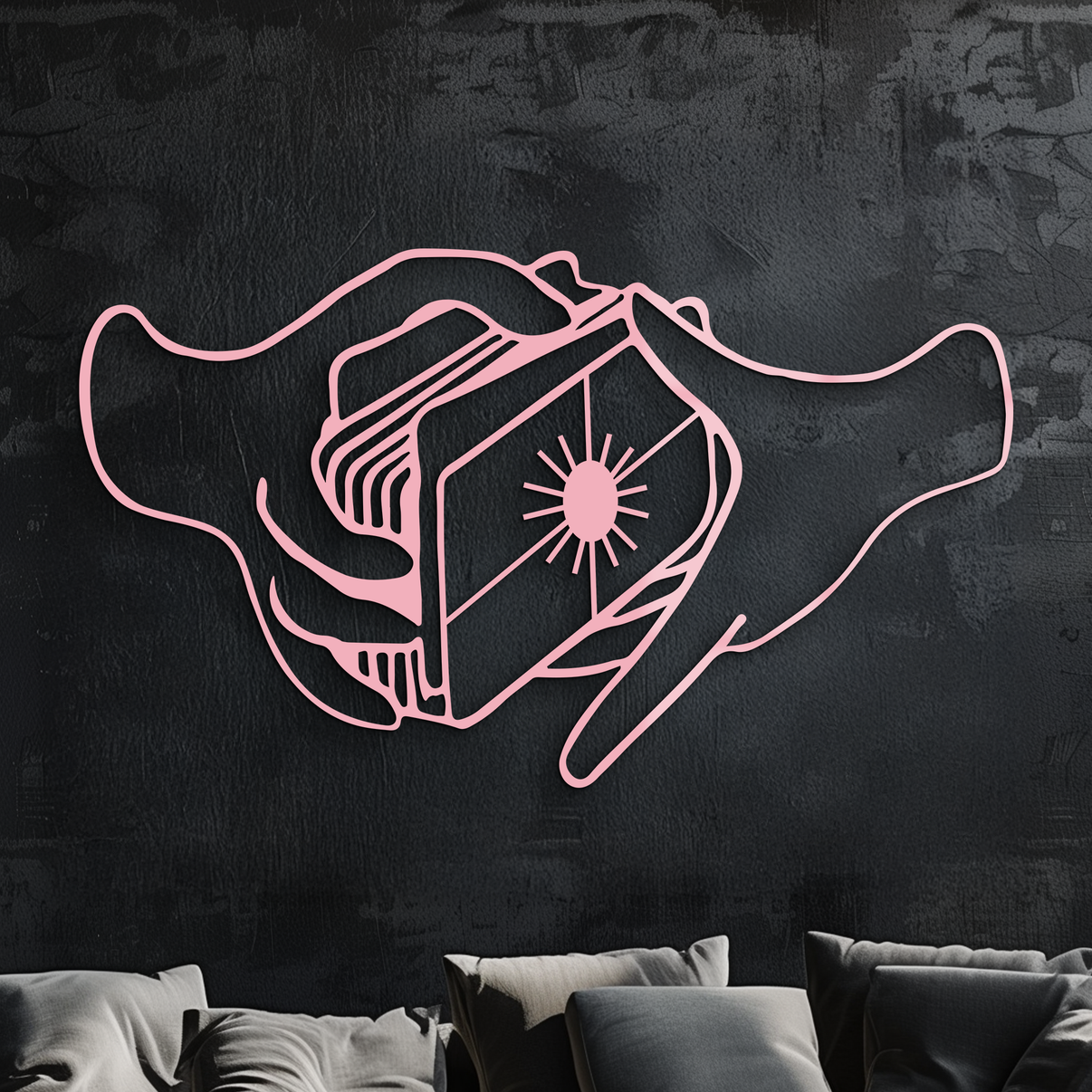 Add a mystical aura to your home with this Tarot Card Reading Hands Metal Wall Art. Featuring two elegant hands holding tarot cards with symbolic details, this artwork brings spirituality and mystery into any room. Perfect for meditation spaces, bohemian interiors, or as a unique gift for spiritual enthusiasts. Crafted from durable 1.5 mm premium metal and coated with electrostatic matte black paint for long-lasting elegance.