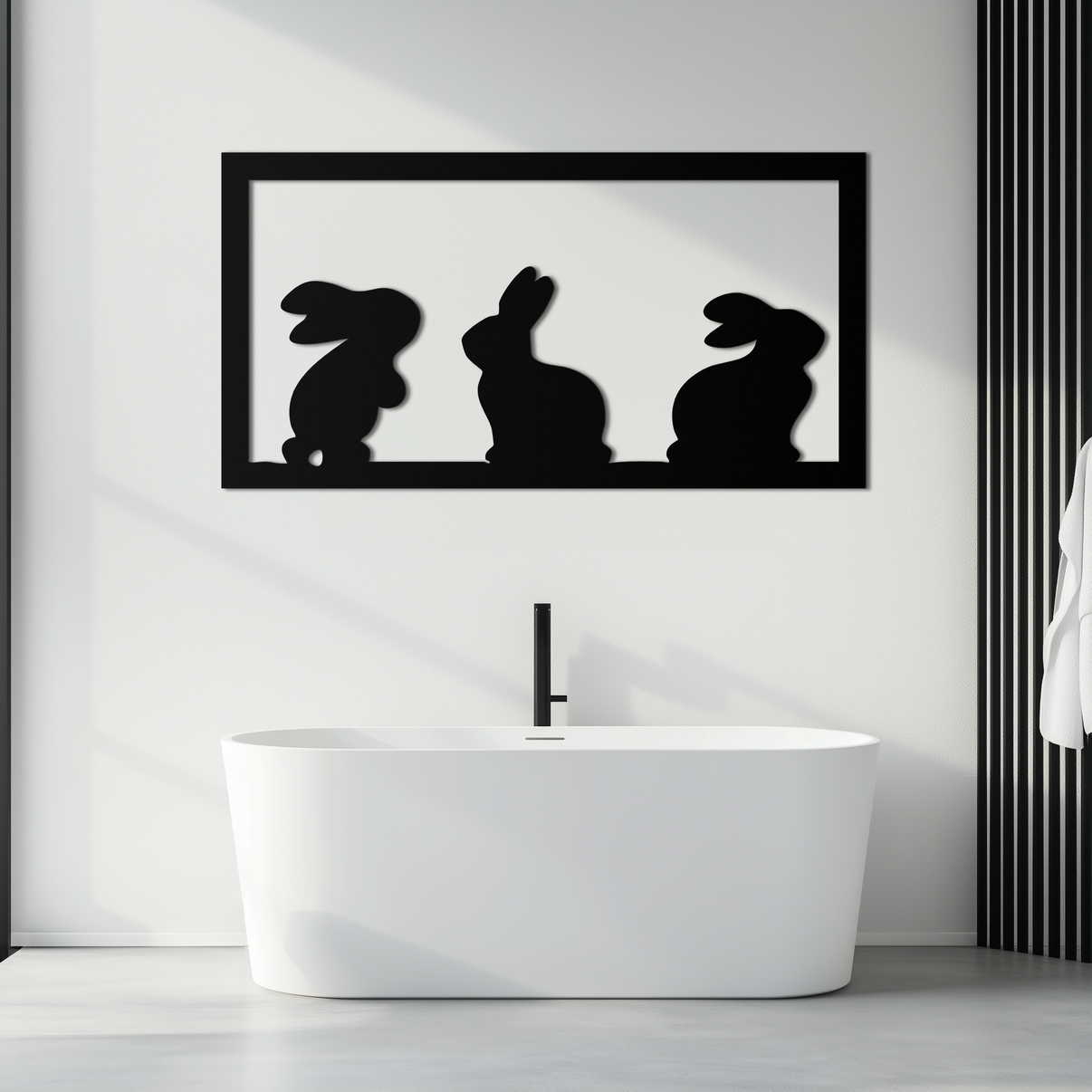 This modern Three Bunny Silhouette metal wall art is the perfect way to add a touch of sophistication and artistic beauty to your home. Order yours today.