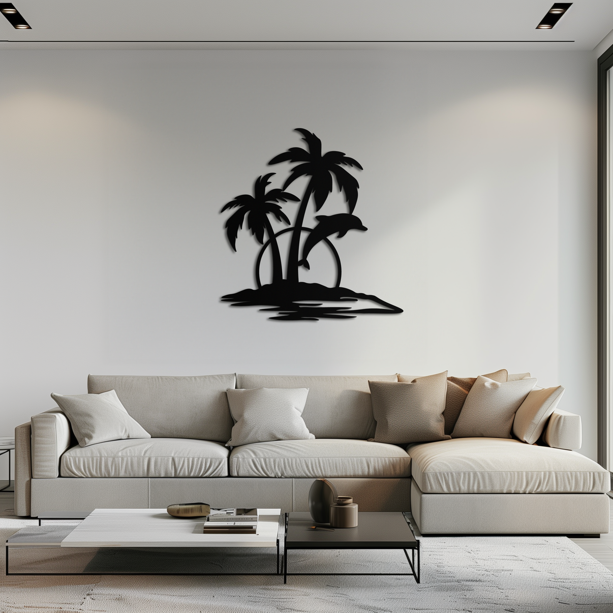 This modern tropical dolphin and palm tree metal wall art is the perfect way to add a touch of sophistication and coastal beauty to your home. Order yours today.