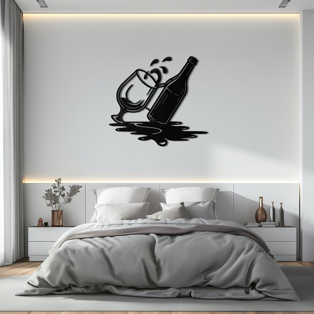 Elevate your bar, kitchen, or lounge area with our Wine Bottle and Glass Metal Wall Art. Featuring a sleek design of a wine bottle pouring into a glass with an artistic splash, this modern piece adds a sophisticated and playful touch to your décor.