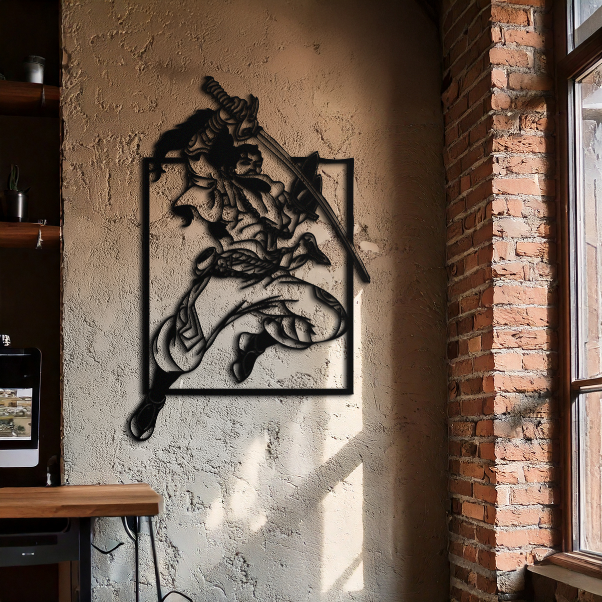 Crafted from 1.5mm premium steel and finished with an electrostatic powder coat, this piece is both durable and visually stunning. Suitable for both indoor and outdoor spaces, it’s perfect for gaming rooms, bedrooms, or any stylish space seeking a heroic touch.