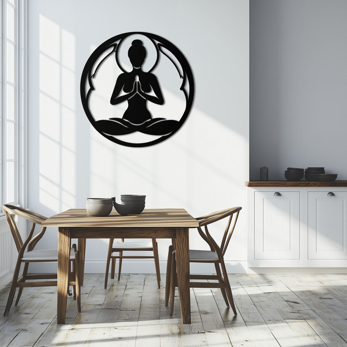 Made from 1.5mm premium steel and finished in matte black with electrostatic powder coating, this wall art ensures both visual appeal and long-lasting durability. A refined piece for those who value simplicity, mindfulness, and inner peace.