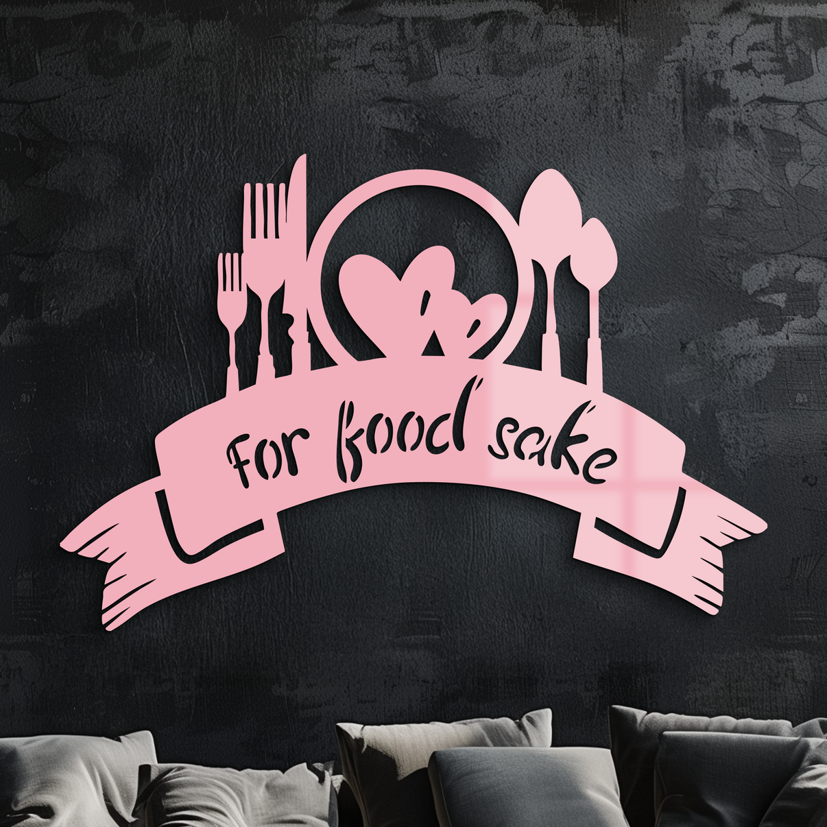 Add a fun and stylish vibe to your cooking space with the For Food Sake Metal Wall Art. Designed with cutlery silhouettes and a charming banner design, this piece brings personality to your kitchen or dining room. Crafted from high-quality metal and finished with a durable powder coating, it’s built to last while enhancing your culinary space. Perfect as a gift for foodies, home chefs, or anyone who loves unique kitchen décor.