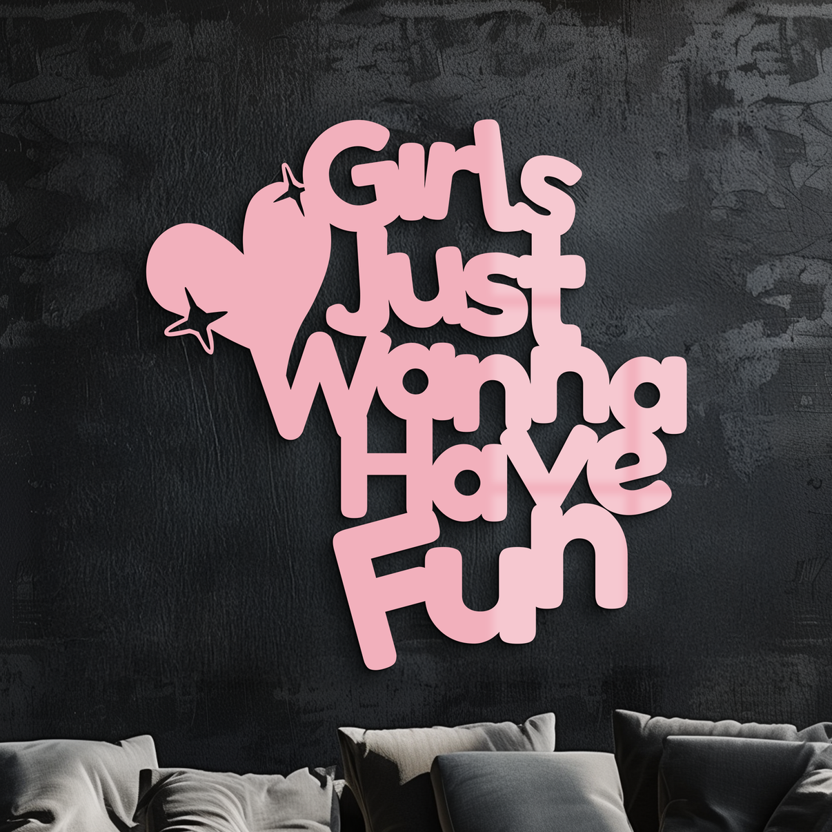 This modern Girls Just Wanna Have Fun metal wall art is the perfect way to add a touch of sophistication and playful beauty to your home. Order yours today.