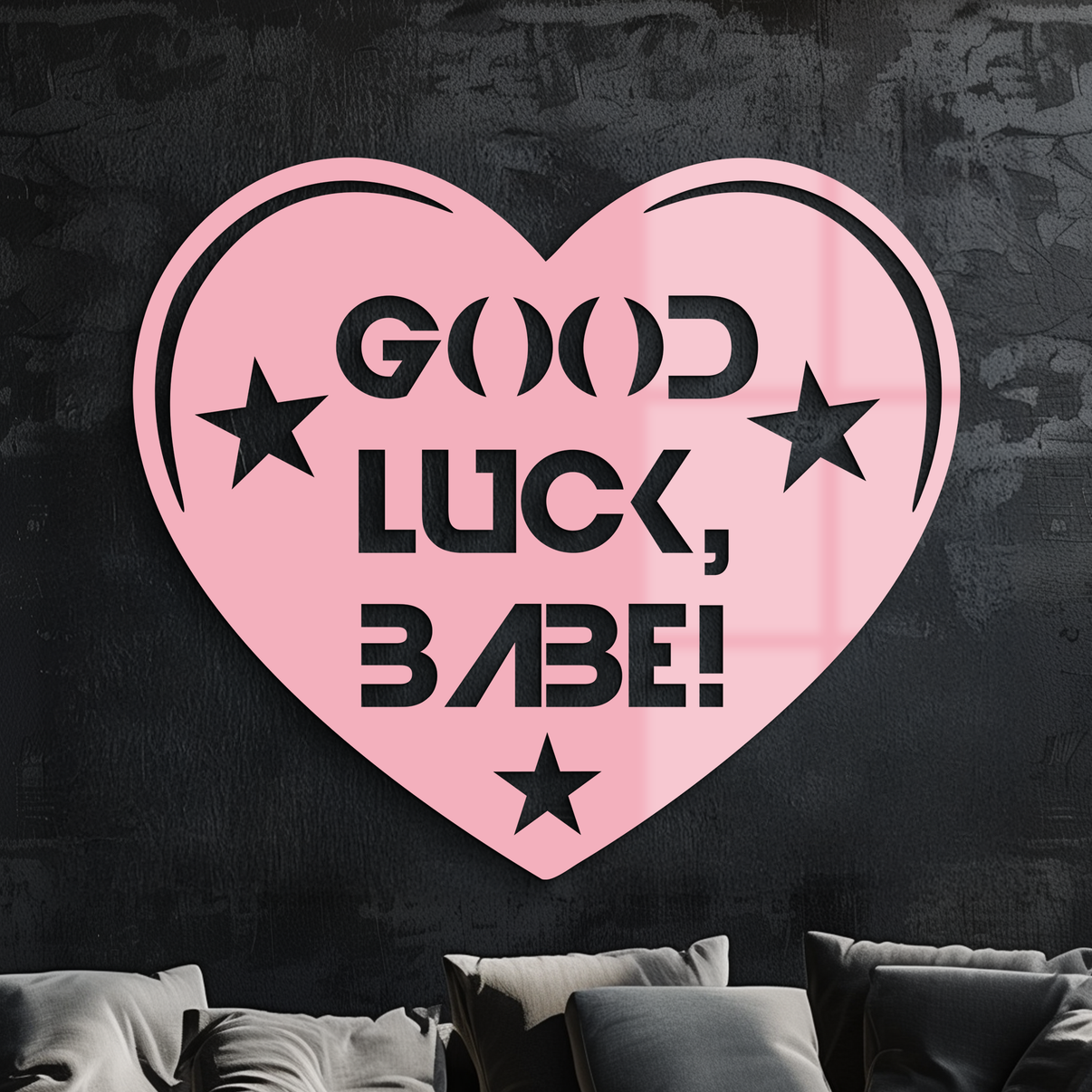 Bring charm and positivity to your walls with the Good Luck Babe Heart Metal Wall Art. Designed with a bold heart shape, stylish typography, and star accents, this piece is crafted from premium quality metal and finished with a durable powder coating for long-lasting beauty. Perfect for bedrooms, living rooms, or creative spaces, it’s a fun and motivational décor piece for those who love unique, statement-making art.