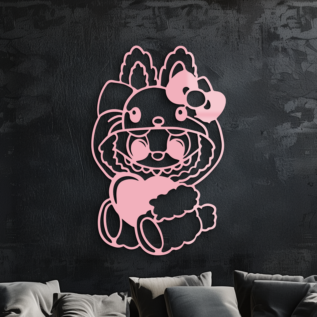 This modern Hello Kitty Hat Labubu metal wall art is the perfect way to add a touch of sophistication and playful beauty to your home. Order yours today.