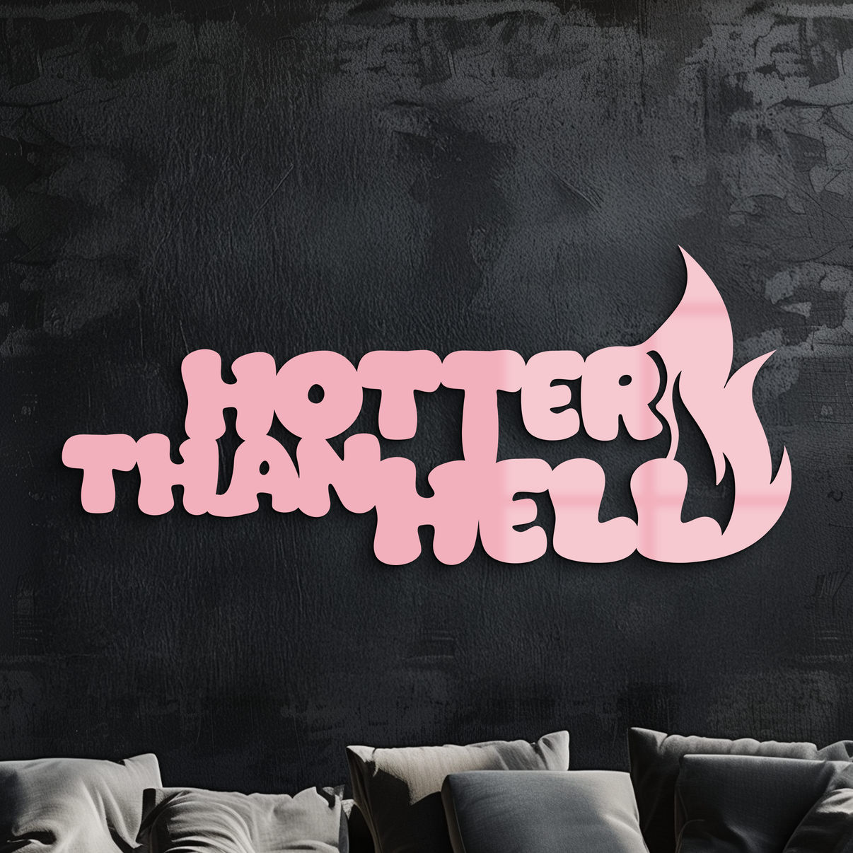 Ignite your walls with the fierce energy of this Hotter Than Hell Metal Wall Art. Featuring a bold, bubbly typography combined with a striking flame detail, this piece brings a touch of rebellious heat to your décor. Crafted from premium quality metal with a durable powder-coated finish, it’s designed to stand out and last. Perfect for modern interiors, music-inspired spaces, or as a statement gift for someone with fiery energy.