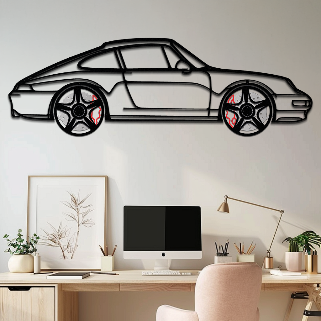 Celebrate one of the most iconic air-cooled designs ever with this Porsche-inspired 911 (993) Silhouette Metal Wall Art. Crafted for true enthusiasts, this premium metal artwork highlights the elegant, timeless lines of the legendary 993 while adding a modern twist—its wheels can be manually rotated, making it both decorative and interactive.
