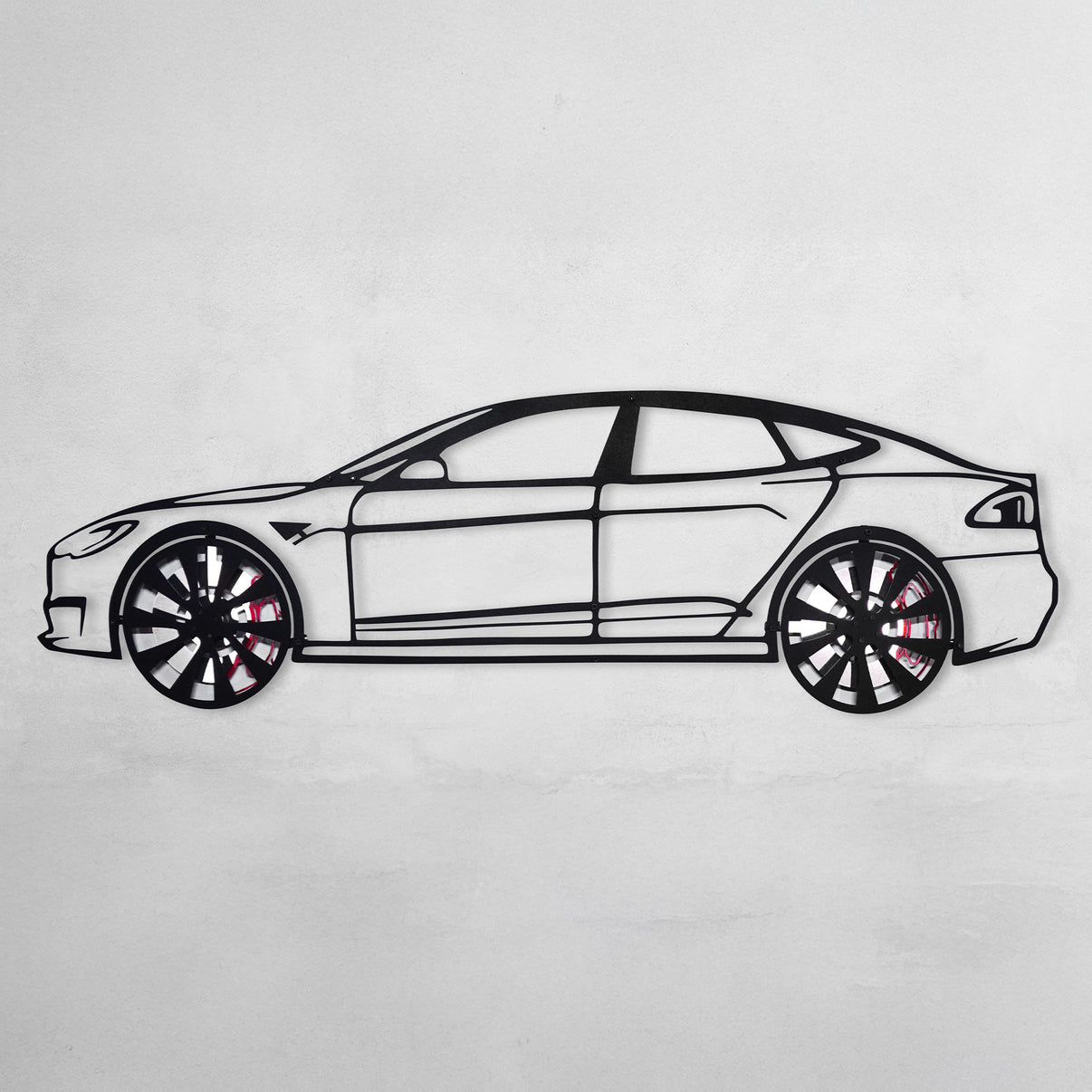 Tesla Model S Wall Art – Electric Car Steel Silhouette with Spinning Wheels-KAFMEKA045
