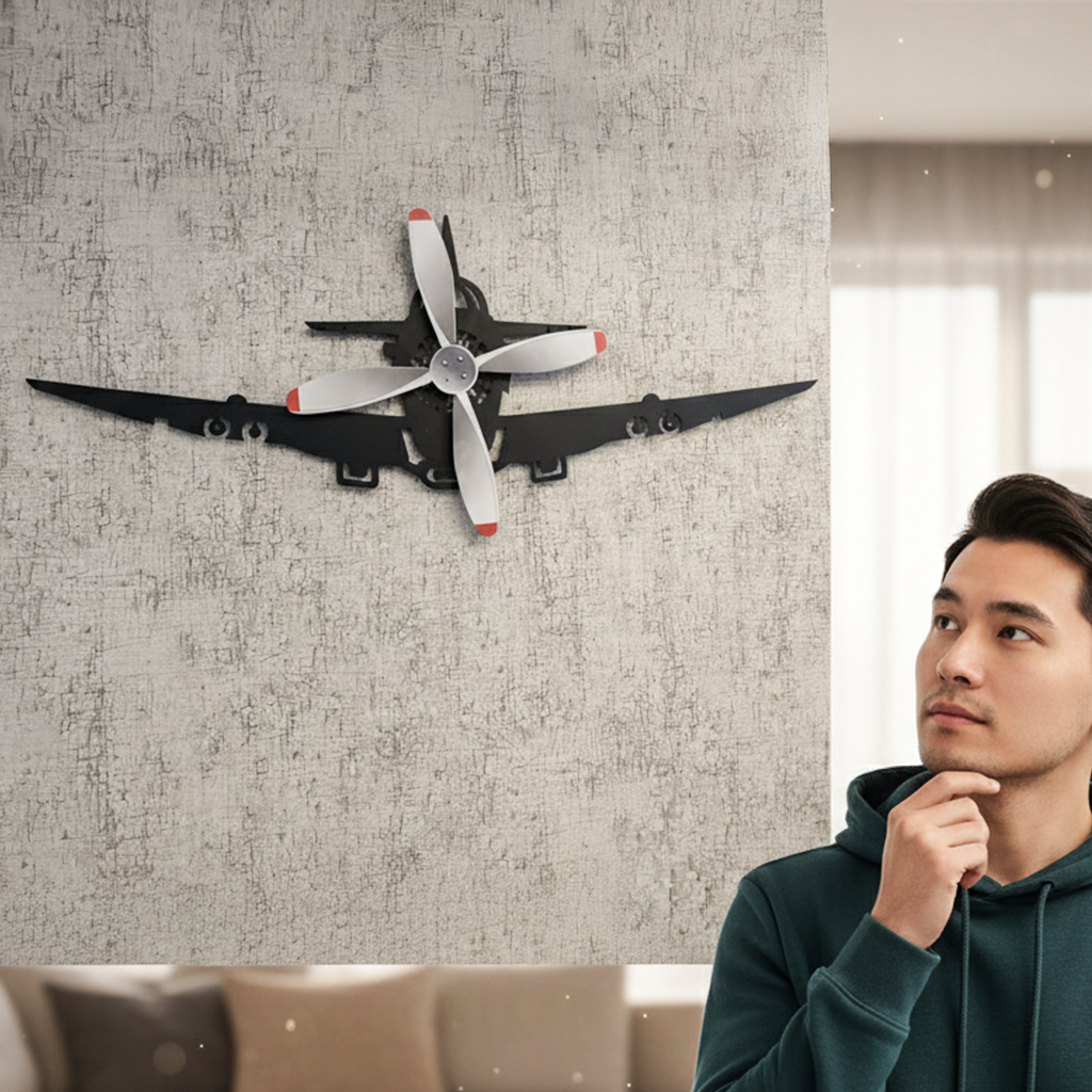 The Airplane Wall Art with Spinning Propeller is a statement piece for anyone who dreams in clouds. Crafted entirely from durable powder-coated metal, this wall-mounted plane silhouette features a realistic, hand-powered propeller that spins smoothly with a flick — adding a touch of motion and surprise to its already bold design.