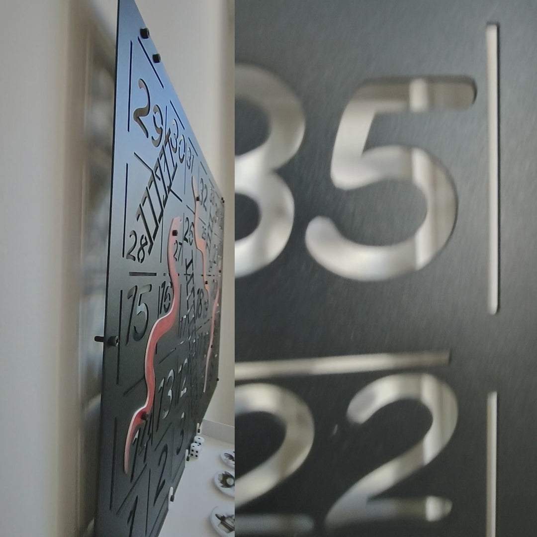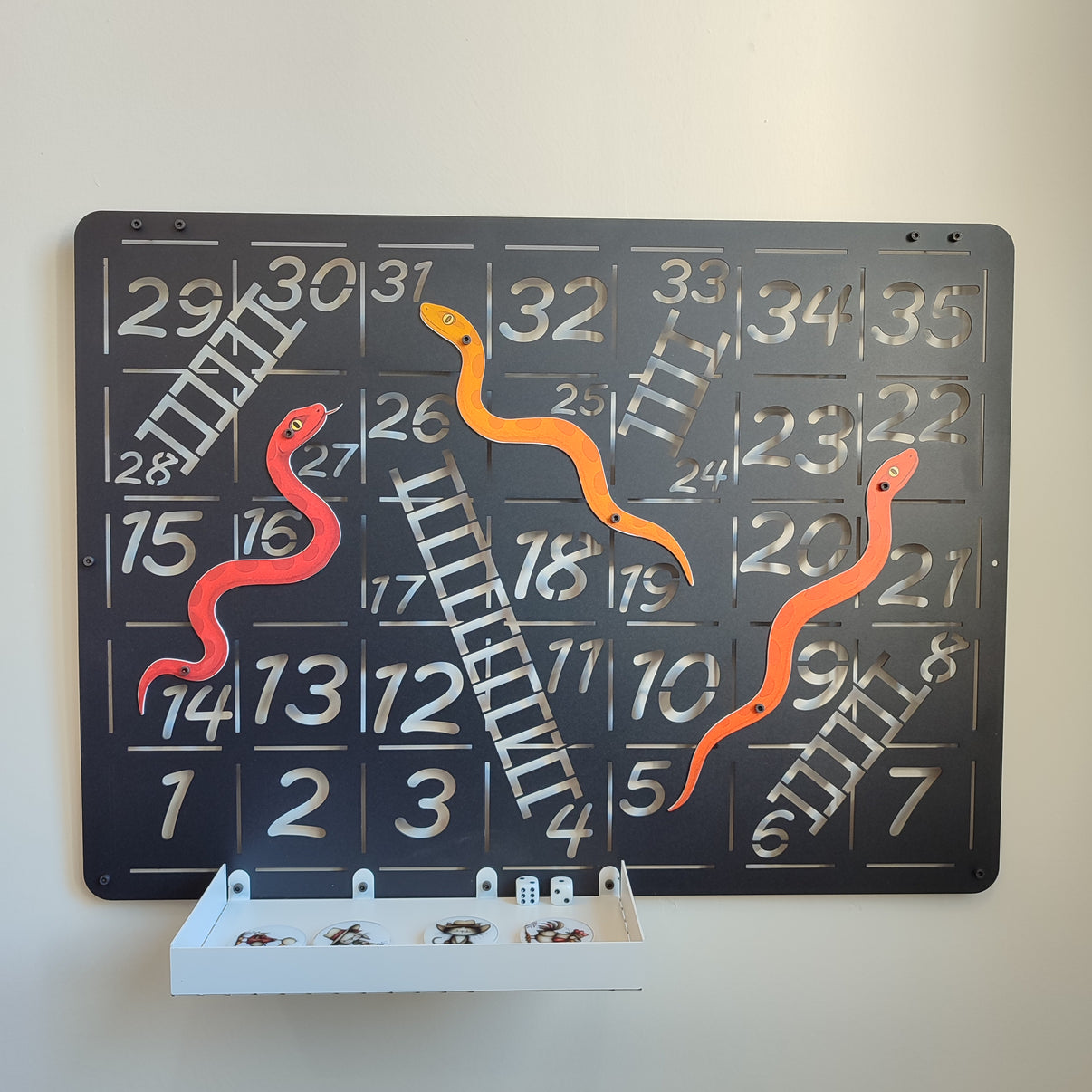 The Mini Climb & Slide Wall Game brings nostalgic game night vibes into a bold, modern format. Designed in clean-cut steel with cutout numbers, ladders, and winding “slides,” this piece is both interactive wall art and a fast-paced, luck-meets-strategy game.