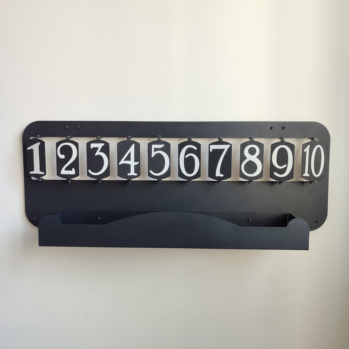 🔩 Materials: Powder-coated metal board with rotating number tiles