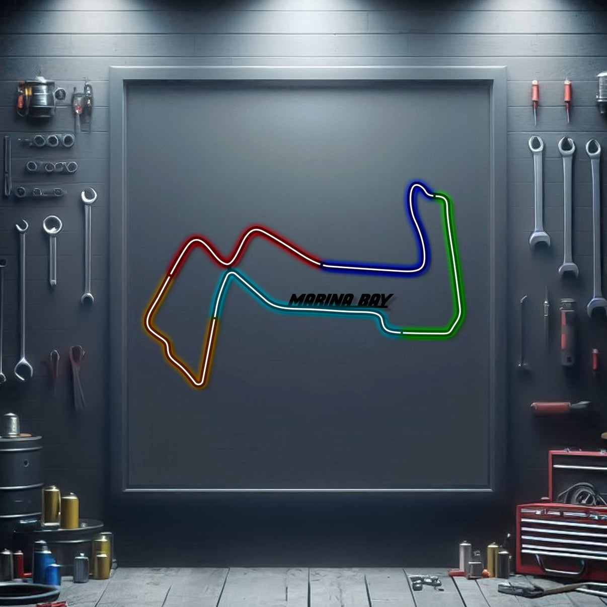 This Marina Bay Metal Neon Race Track will turn any car enthusiast's home. garage. hallway. living room. bedroom. or office into a unique space. add a stylistic look and captivate petrolheads as well as visitors.