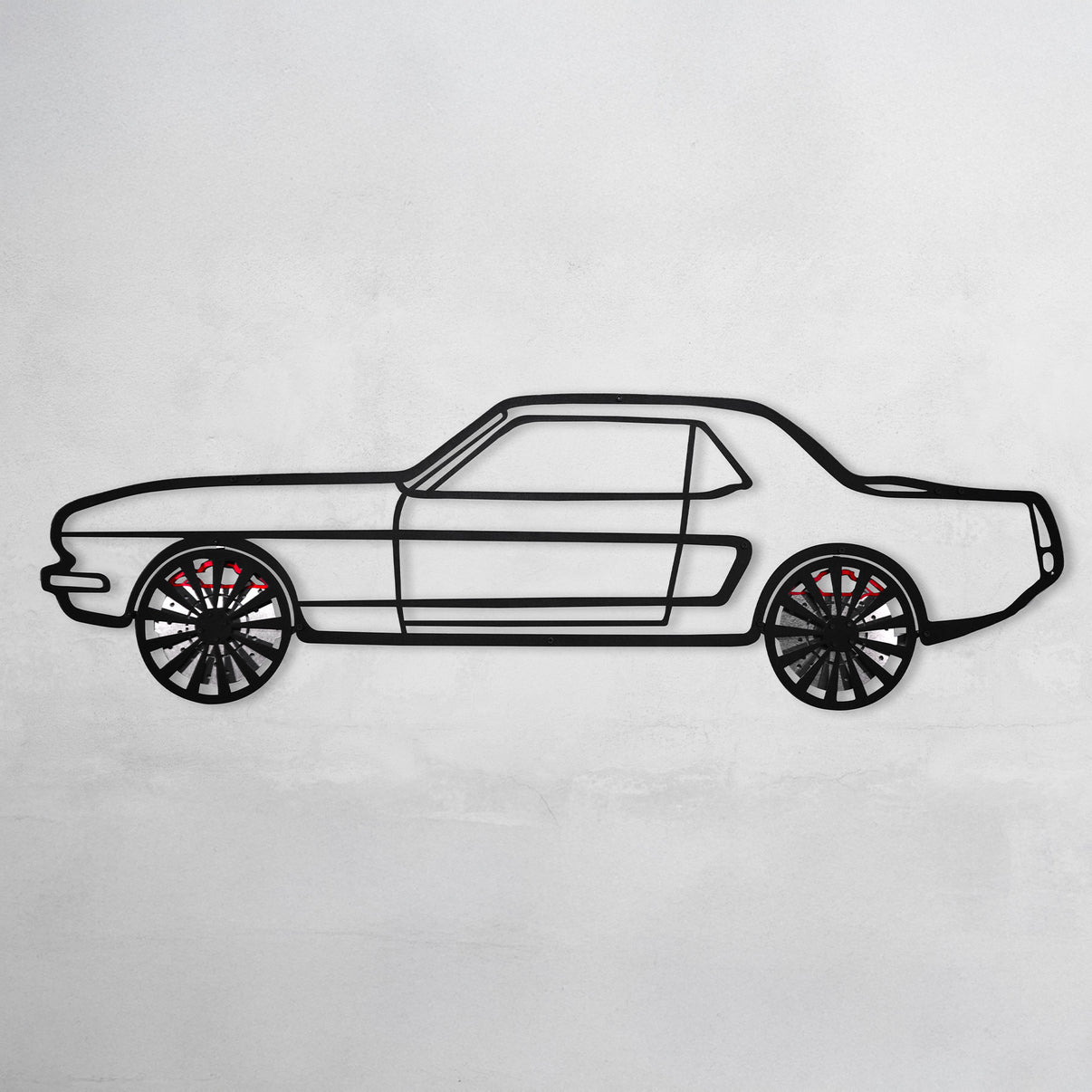 1964 Ford Mustang Wall Art – Classic Steel Silhouette with Spinning Wheels-KAFMEKA025