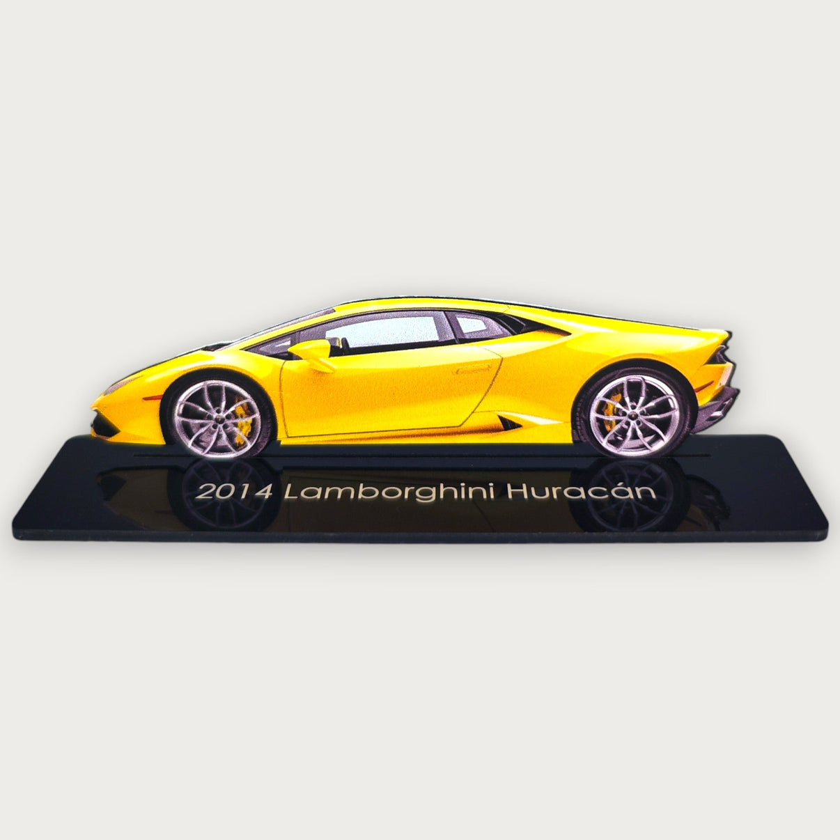 Our table top model Metal part is 15cm (5.9”) and black plexi base is 17cm (6.7”) Made of 2 mm metal, our models have a sleek black base of 3 mm piano black plexi with the brand and model name elegantly displayed. Our Wall Decor Models (30cm 11,8”|50cm 19,7”|70cm 27,5”|110cm 43,3”) do not have a black plexi base. The metal is finished with glossy electrostatic powder and UV digital printing for a vibrant and flashy look.
