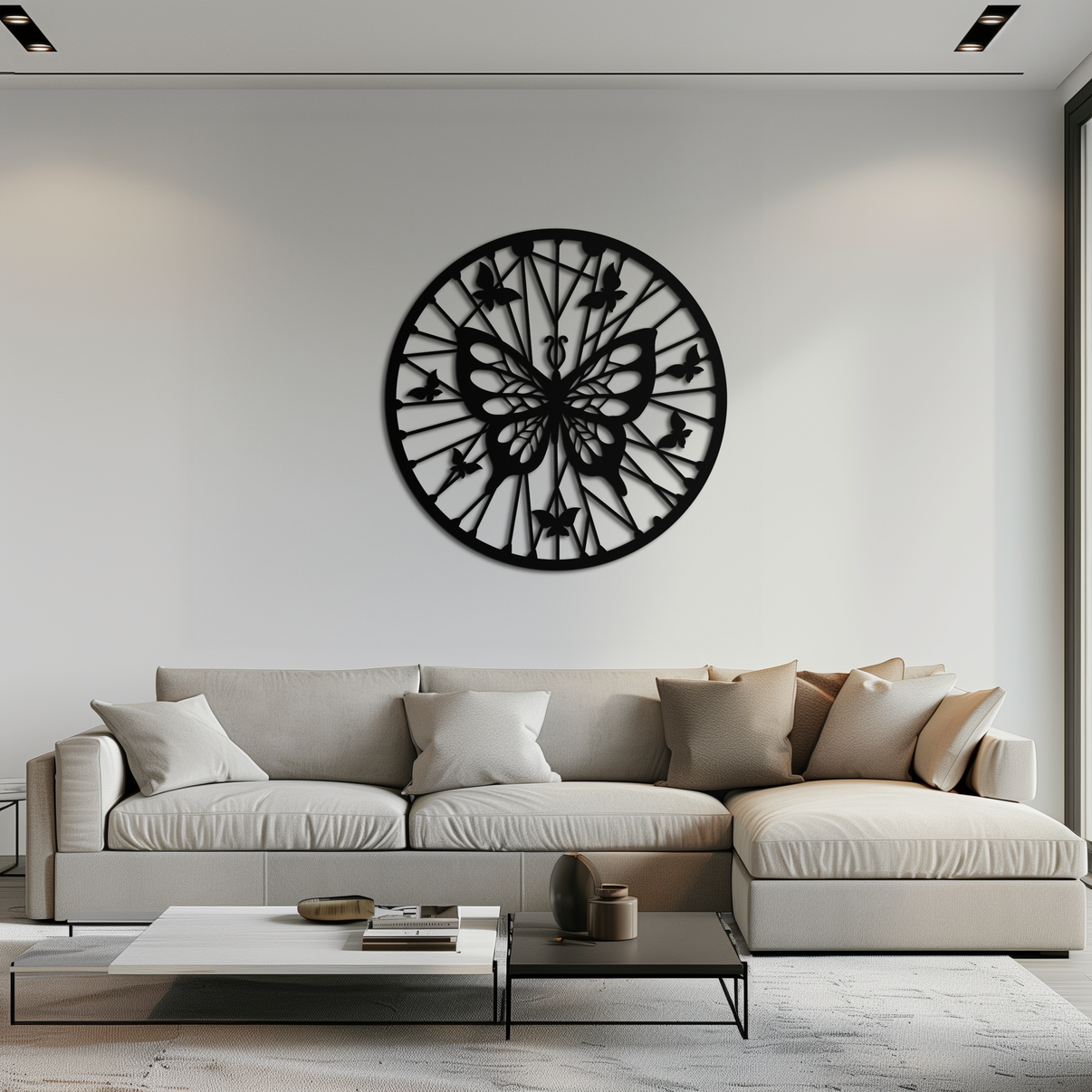 Bring elegance and transformation into your space with this Butterfly Mandala Round Metal Wall Art. Featuring a stunning butterfly at the center of a symmetrical mandala design, this round piece radiates harmony and grace. Ideal for living rooms, bedrooms, hallways, or garden walls, it adds a delicate yet bold touch to any setting.